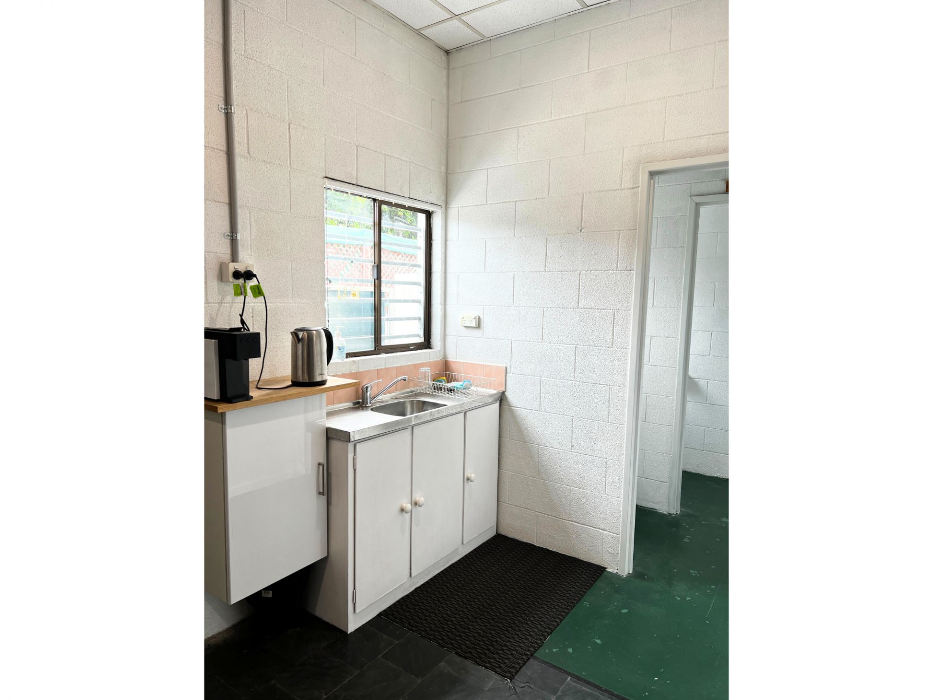 - Glass shopfront and rear roller door for storage