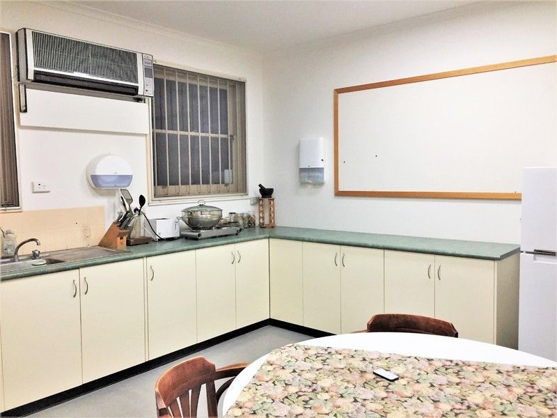 An attached office Suite with high-speed internet, reception, 3 offices, server/storeroom, large kitchen, 3 toilets (1 disabled), bank vault, large meeting/function room or open-plan office, and lockable carpark with disabled ramp.