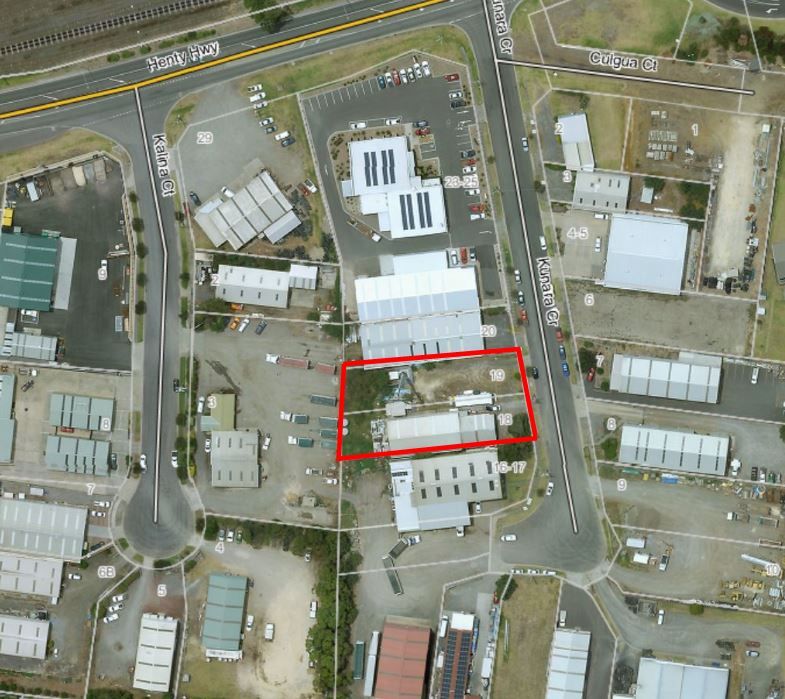 18 Kunara Crescent sitting on 2 titles. Heavy vehicle access to the Ring Road and Port. Large commercial site. Approximately 1965m2.