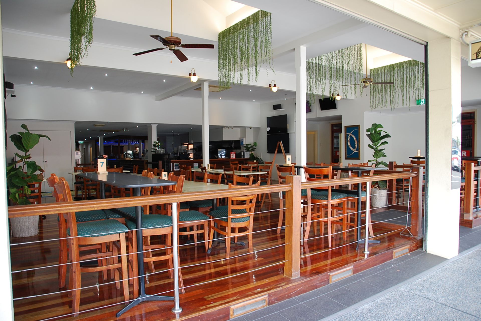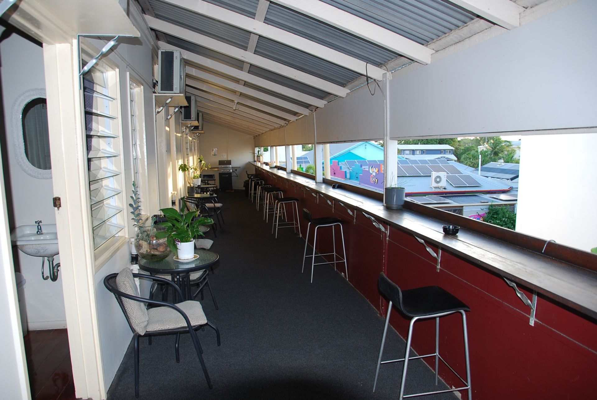 * Upstairs provides accommodation (11 Refurbished Rooms) with split system air conditioning, queen size bedding, bar fridge, LCD television, and free Wi-Fi throughout the hotel. Shared kitchen and coin laundry facilities available.