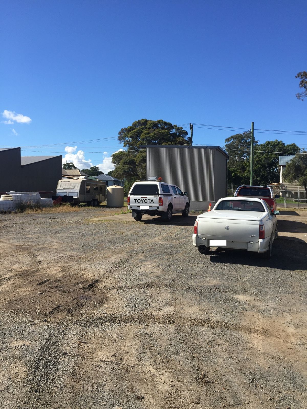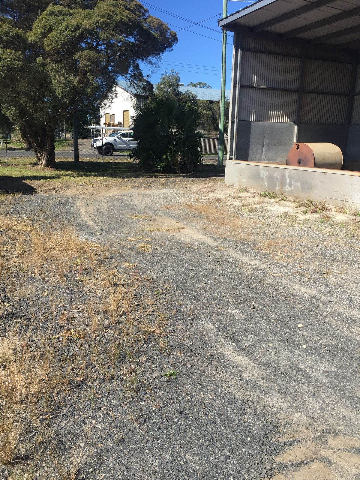 shed of approx. 30 sqm in size. Also includes a large section of commercial land including sections of hard stand. Large enough to manoeuvre trucks and similar machinery. The complex is fully fenced for extra security.