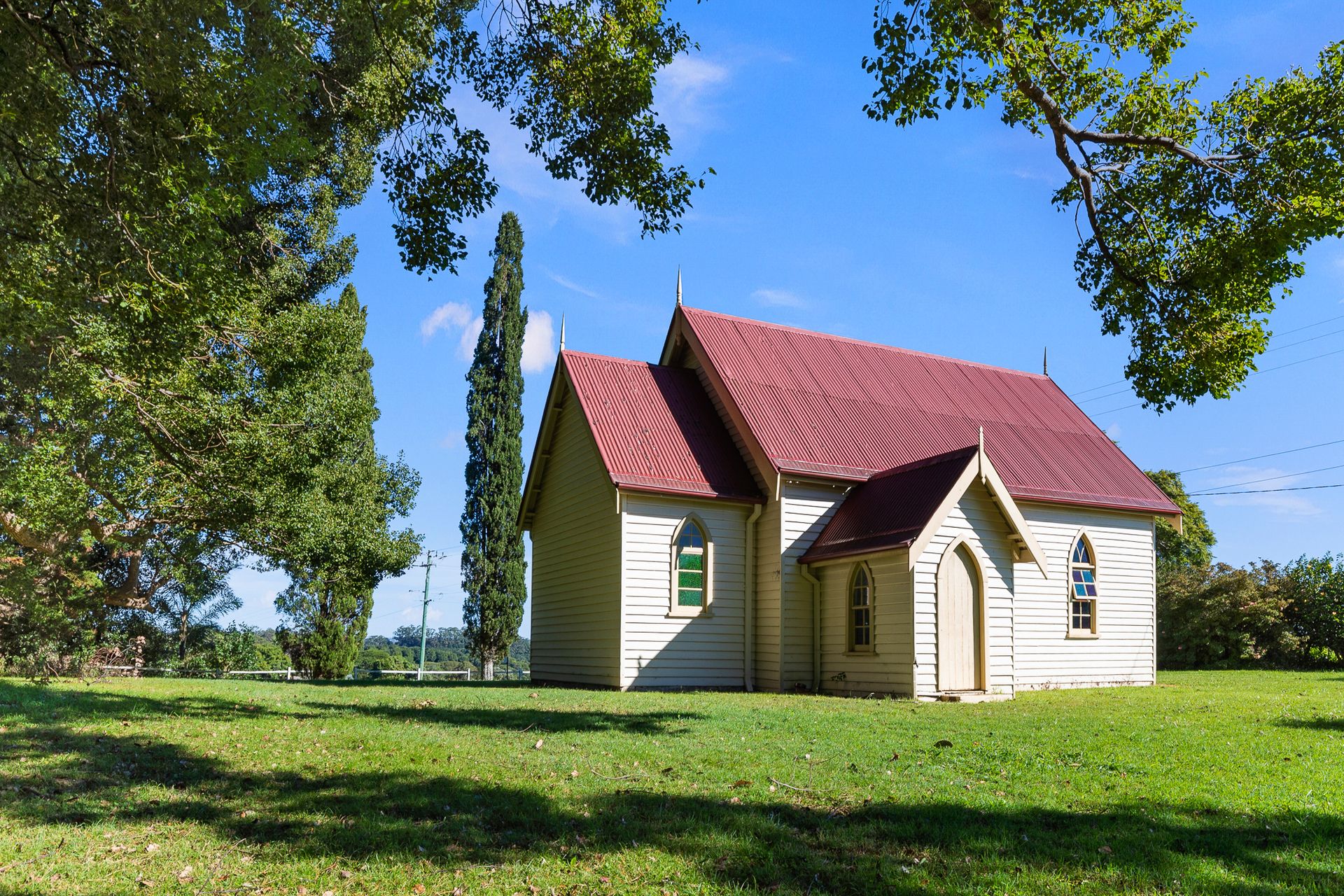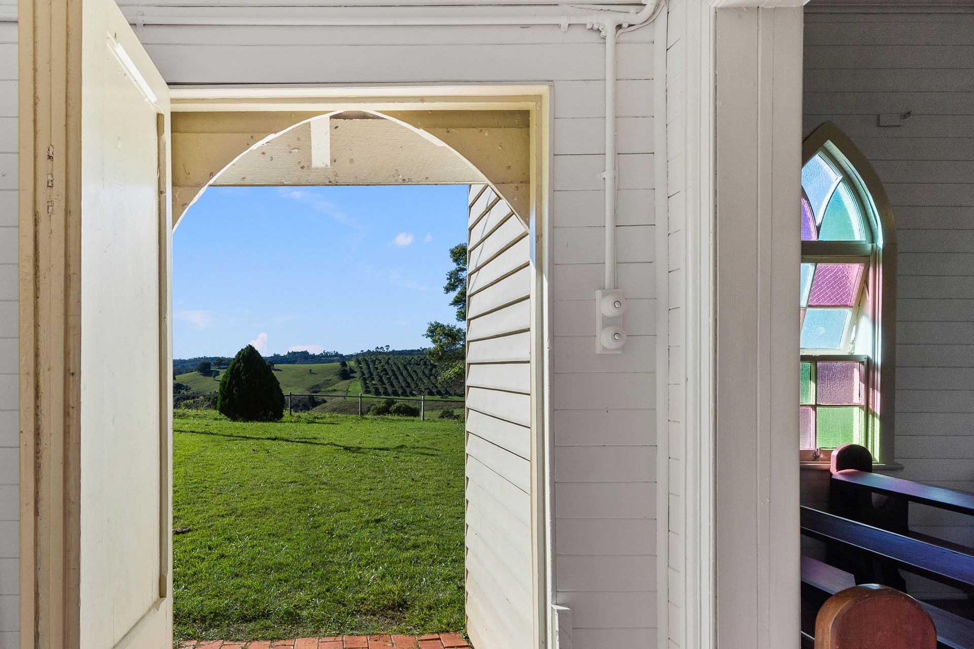 The church building is so full of history and character with charming stained glass windows and soaring ceilings. Conveniently located within 25 minutes from Byron and 10-minutes from Bangalow, this is your opportunity to own a slice of Byron Shire history in this picturesque location.