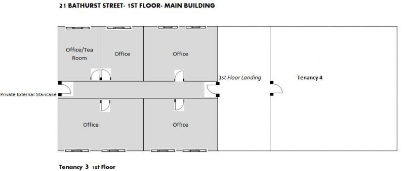 Suite of 4 large offices, first floor, offering flexible usage as either open plan spaces workspaces, large executive offices, or boardrooms.