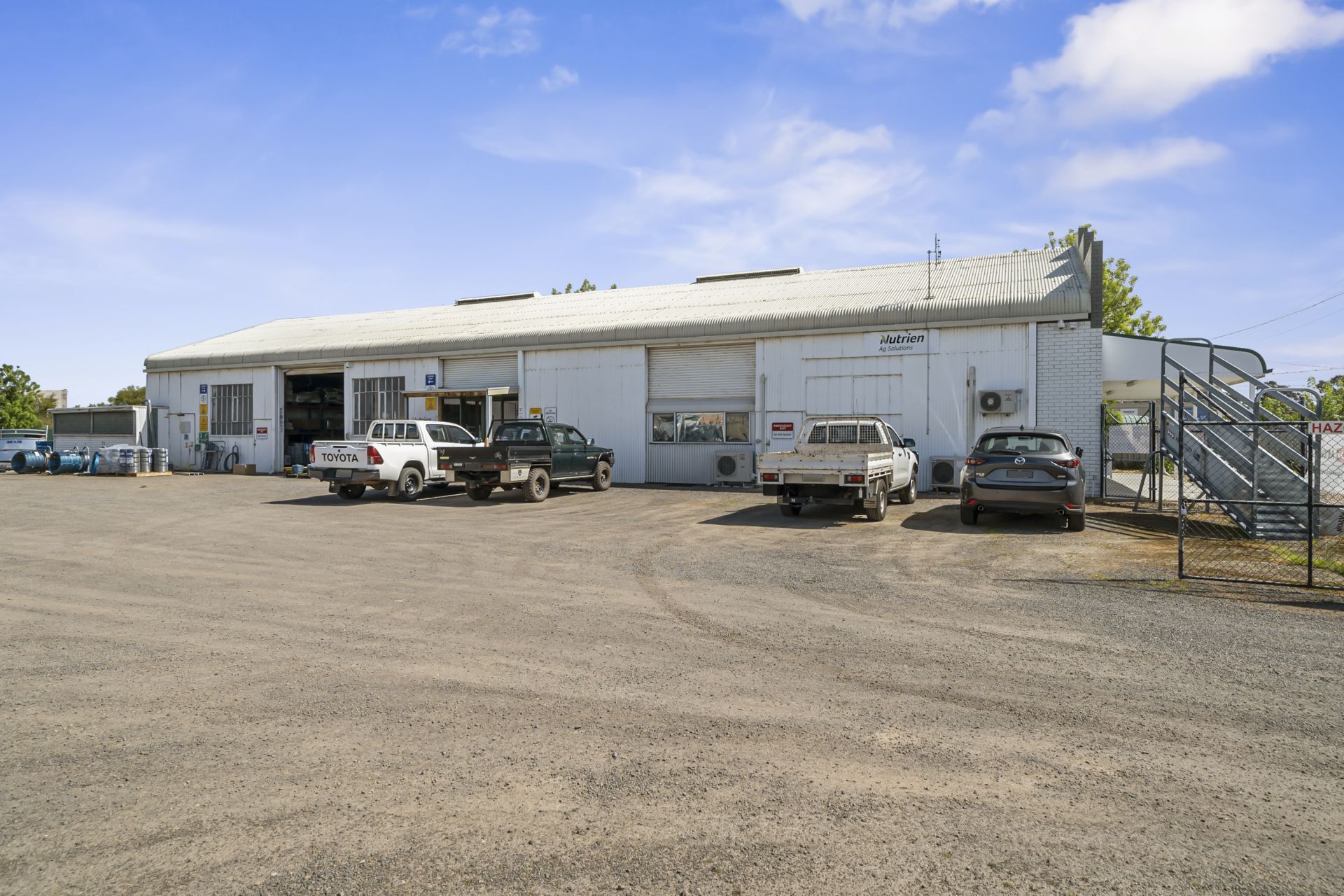 The Commercial premises are Let to sound established businesses in which are, Nutrien Ag Solutions, All Welding, Bill Robertson Garage, Gretel Industries & a Storage warehouse. There is a new occupant that is on the Corner location which sells Ice-Cream/Coffee & Associated Food Lines.