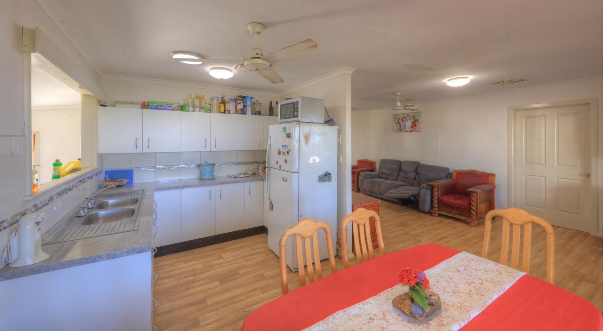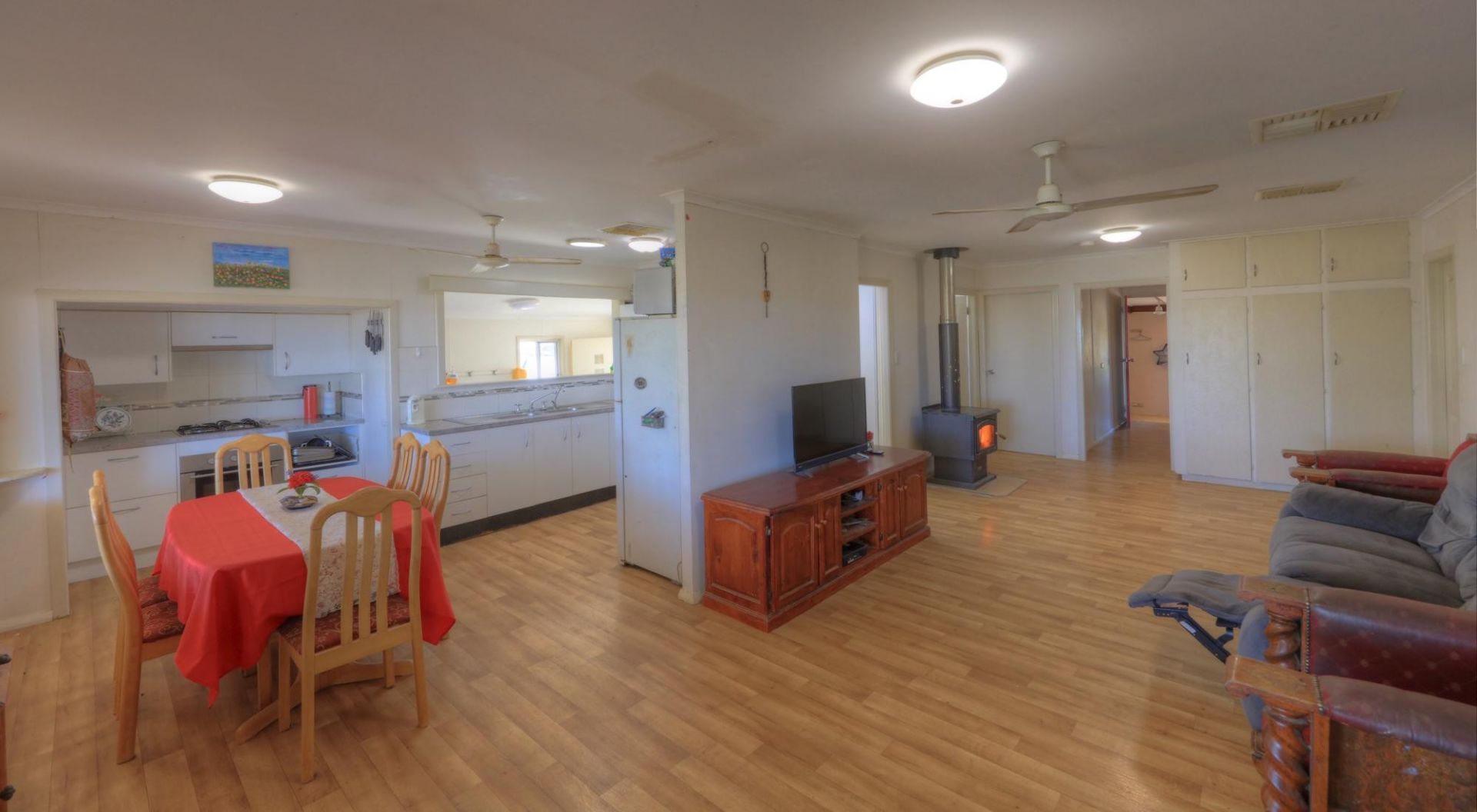 The residence has its own title and is used as a manager’s residence. It is a very comfortable 4 bedroom residence with timber floorboards, open plan kitchen, meals and living. Has a lovely verandah with a rural outlook.