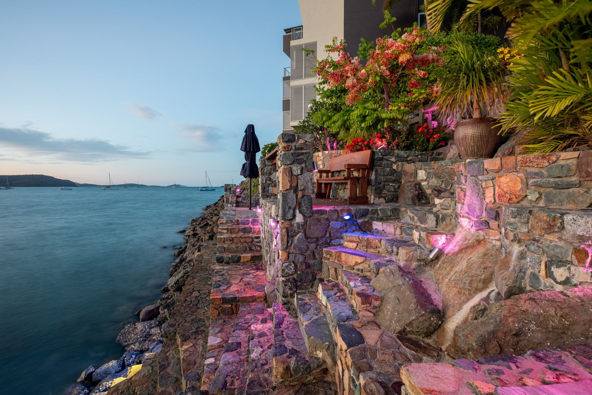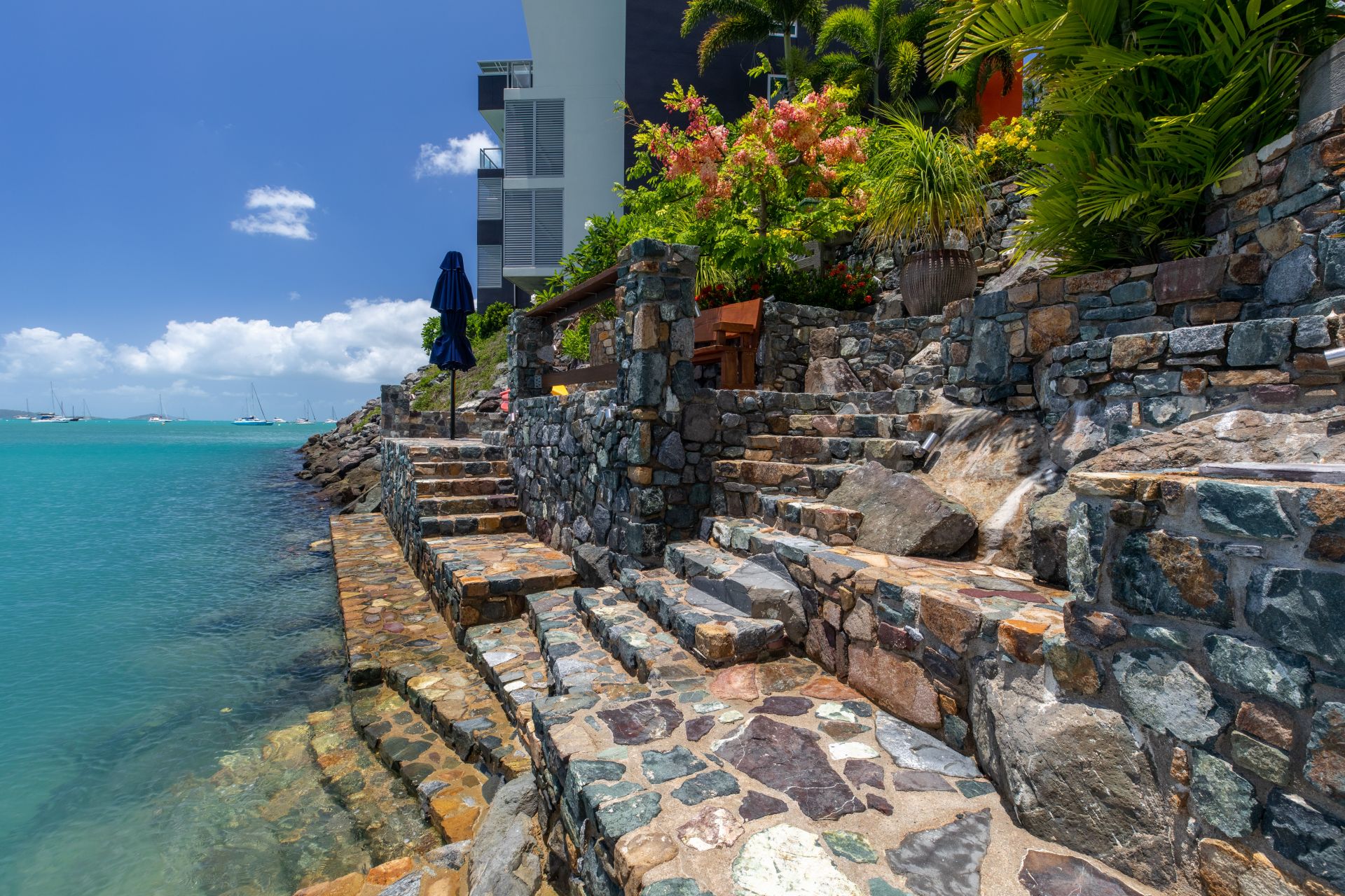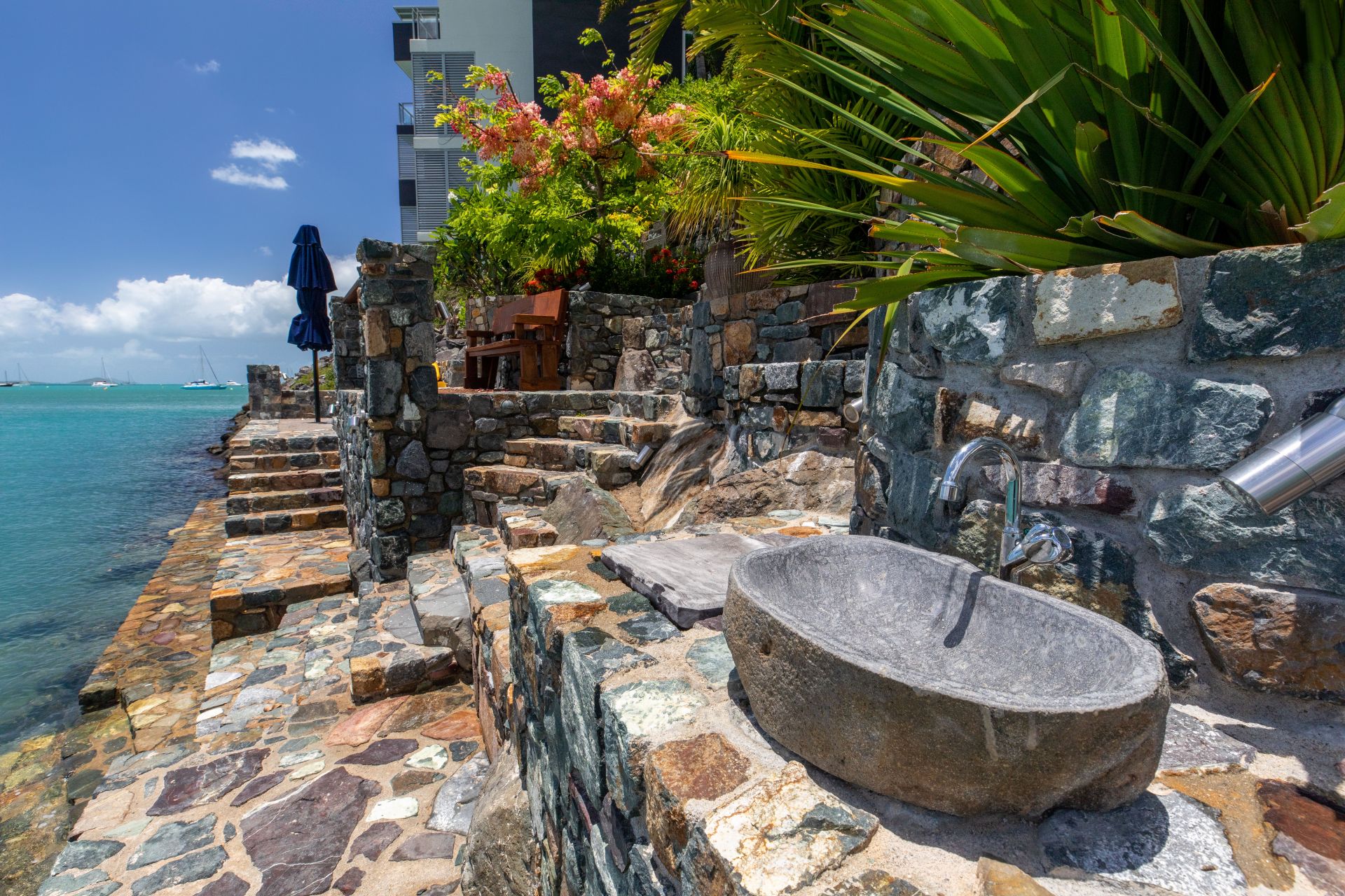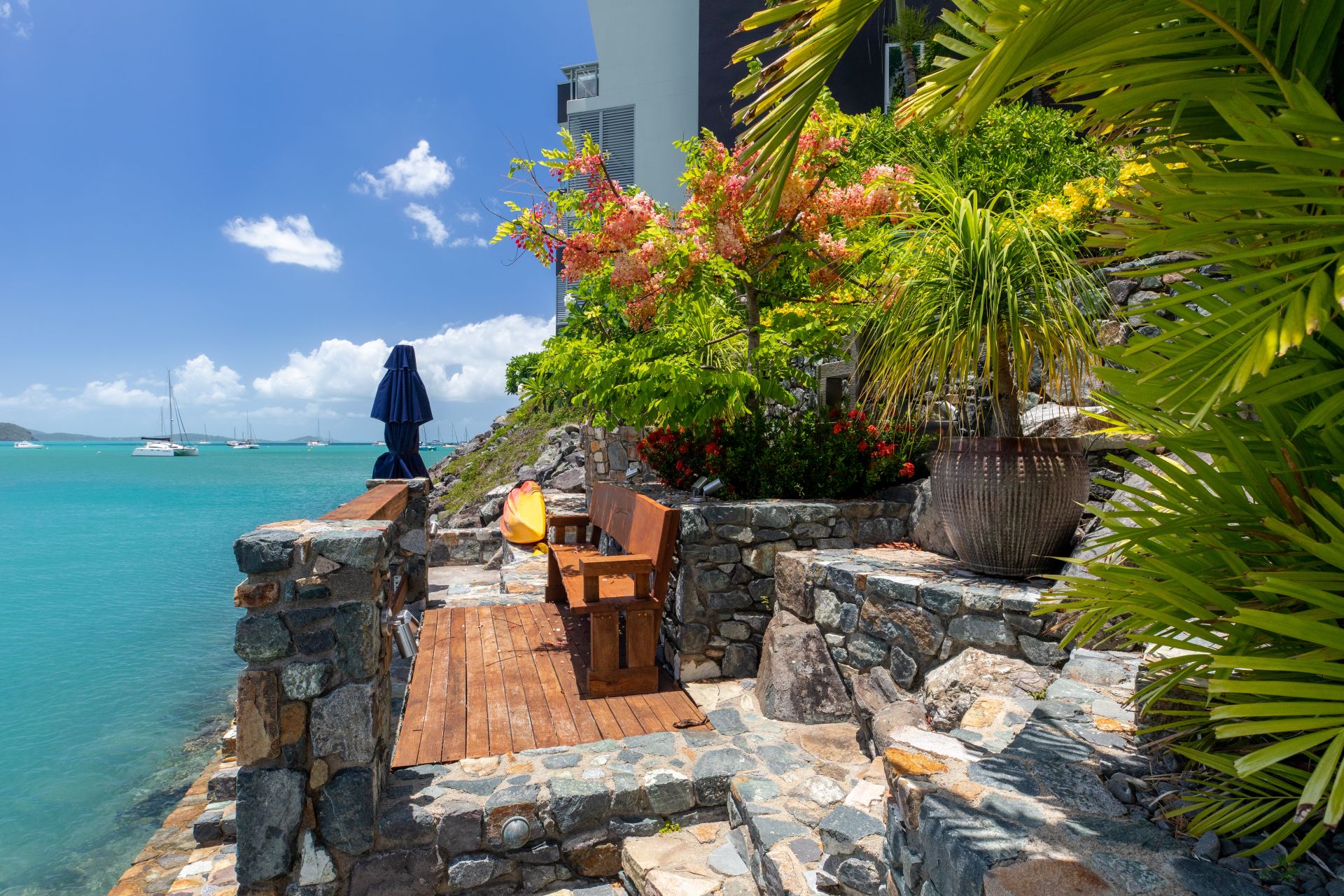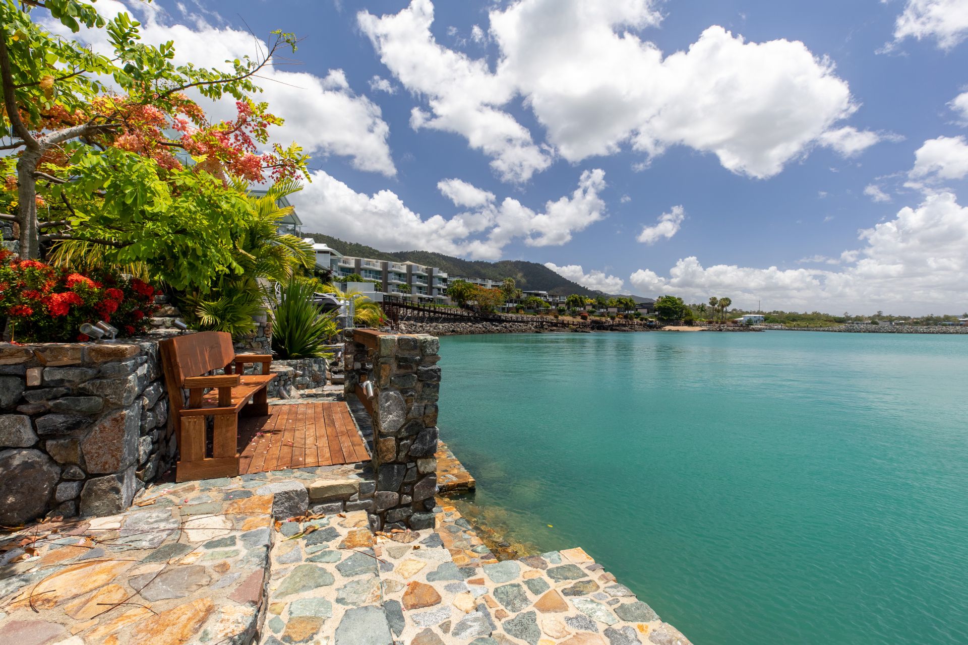With power and water already connected, all you need to do is start designing your dream home (STCA). There are running taps, a sink and 12v lighting on the custom rock wall that runs down to the water's edge. Immaculate landscaping has already been completed with two water features from Bali, a bench seat and a cyclone-rated umbrella worth $5,500.