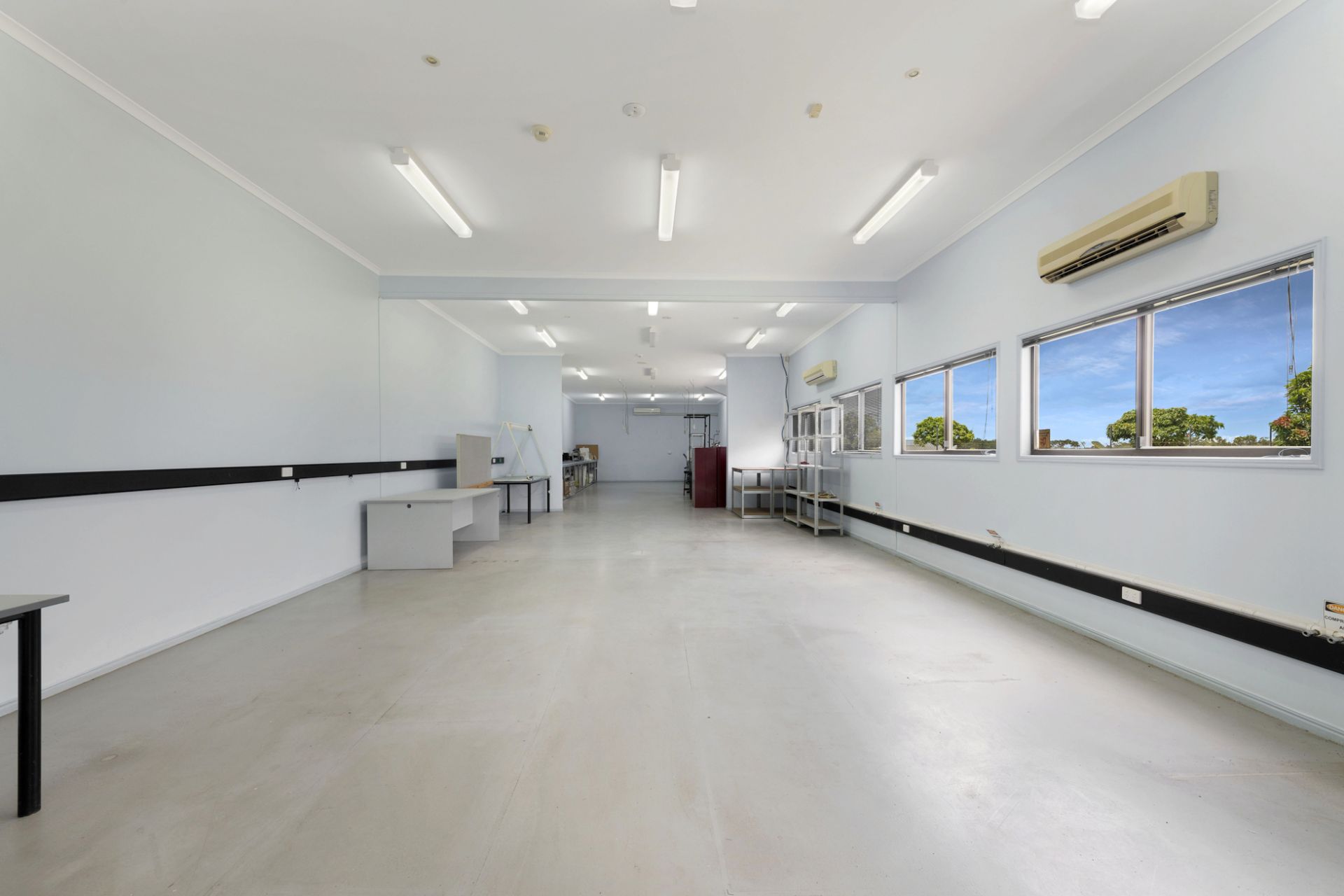 This magnificent 50 metre X 13 metre building is available to purchase or lease. The building is divided into many sections and can have multiple businesses operations or can be rented to one or multiple operators. There are 14 split system air conditioners in the building.