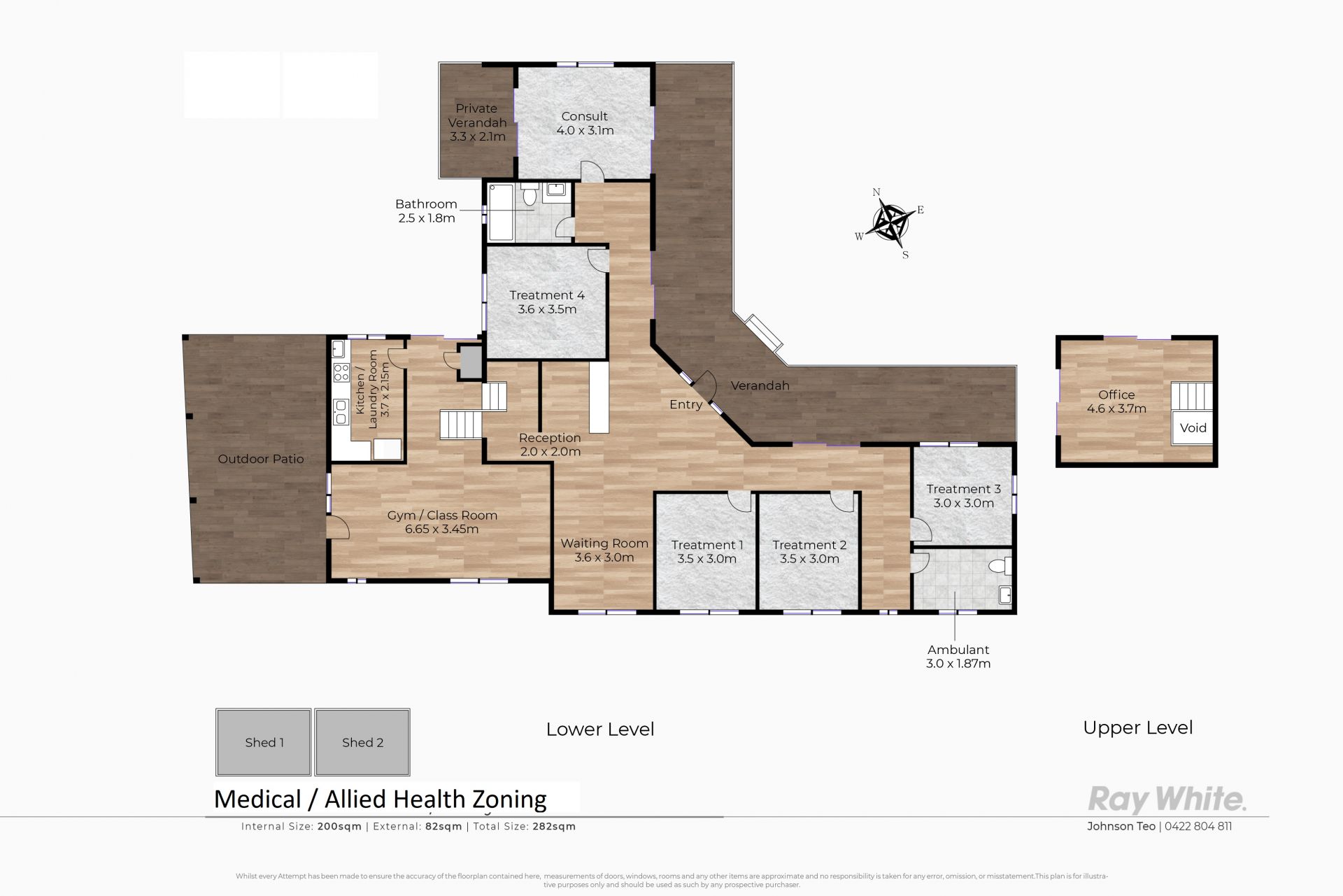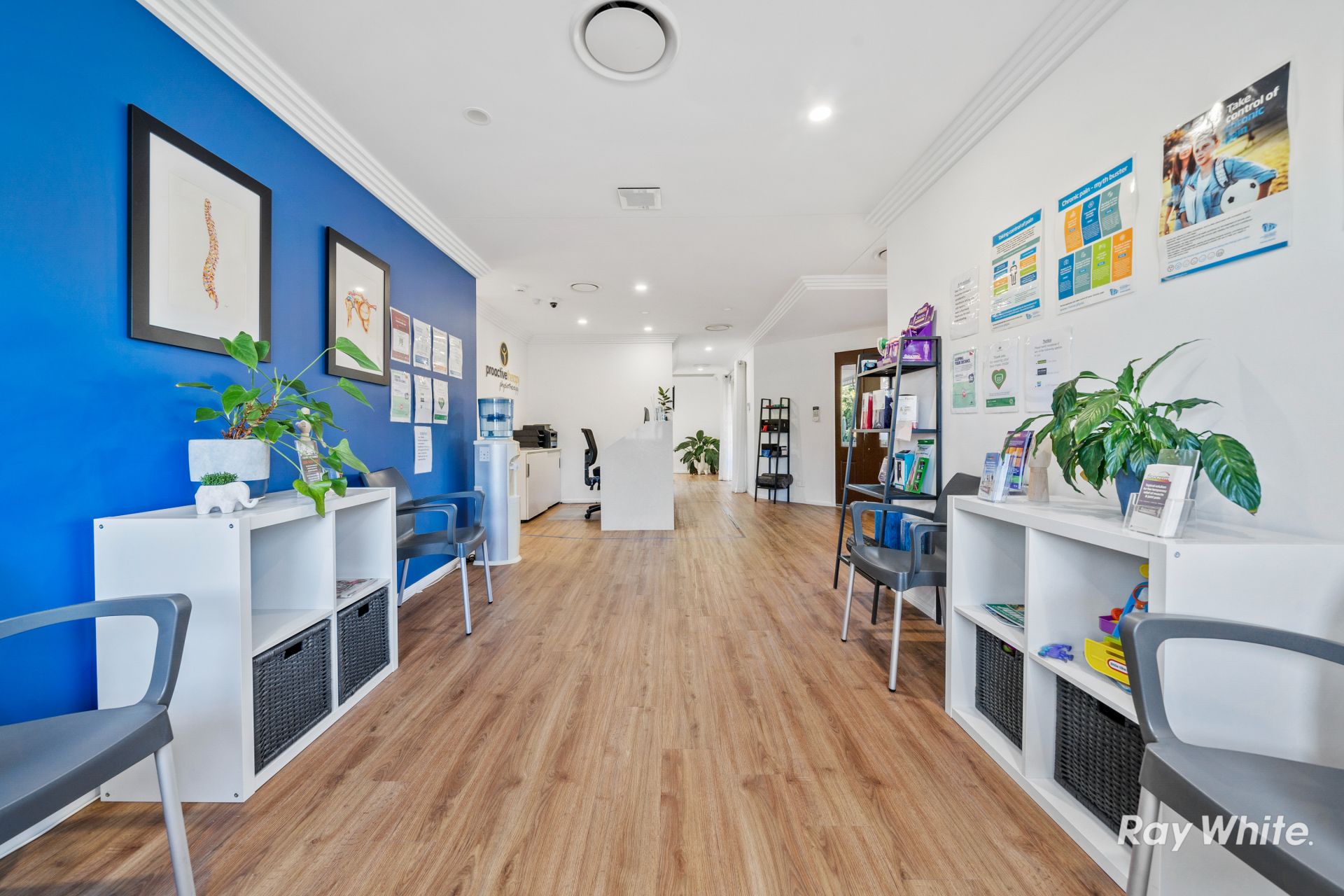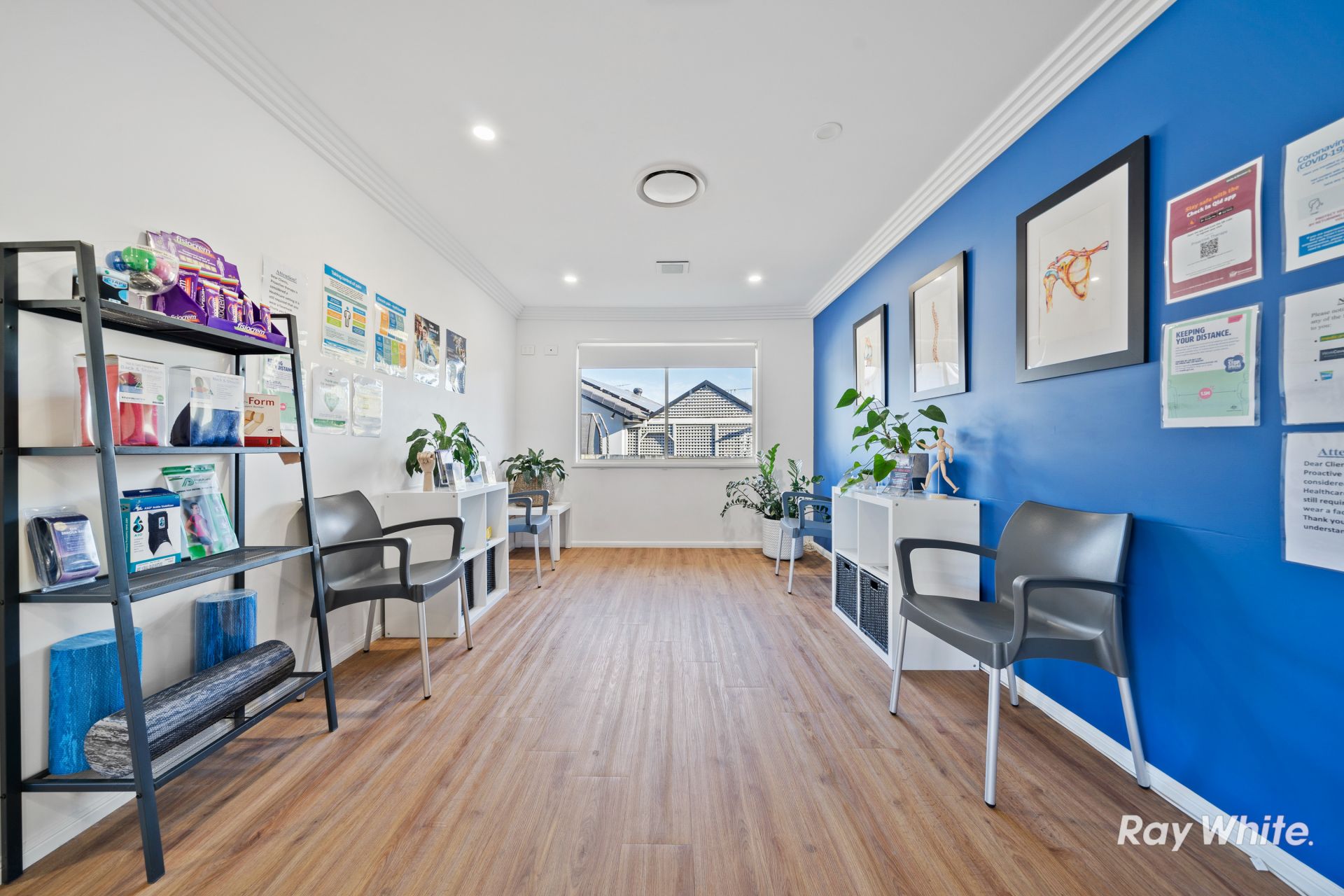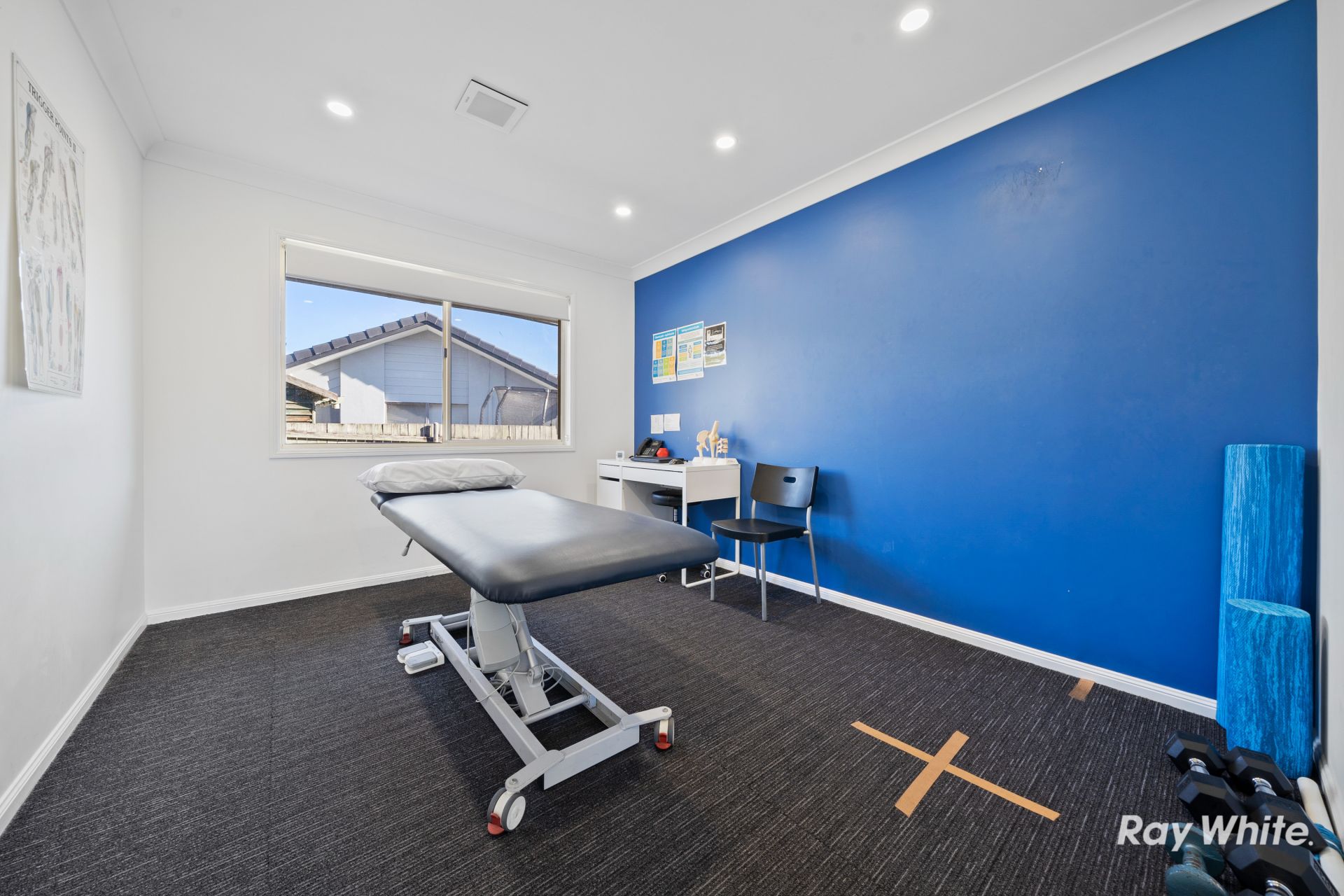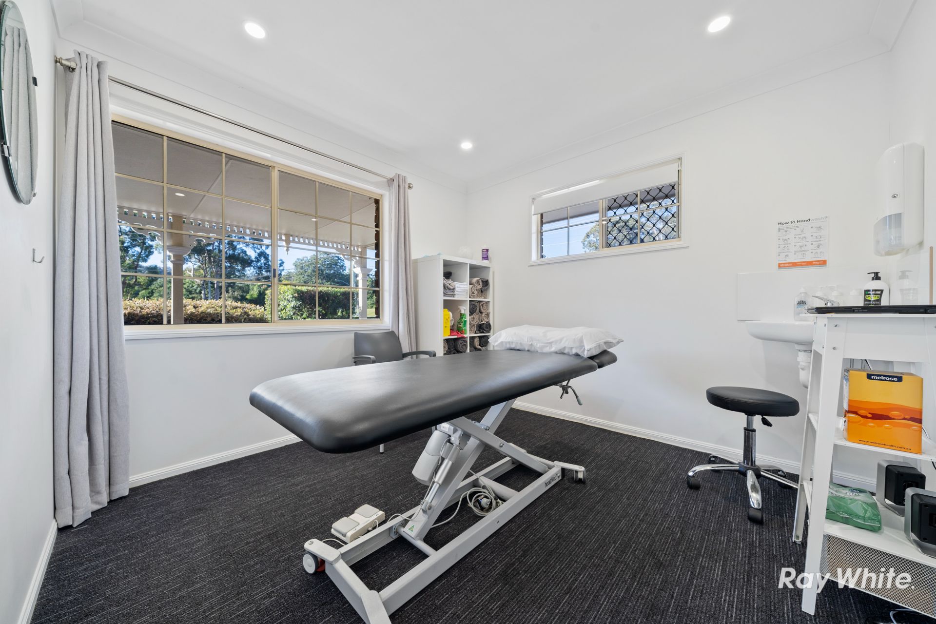 * Current configuration allows 5 treatment rooms (or consultation rooms), upstairs office space, reception, gym/classroom, storage, waiting area, kitchen/laundry for staff, verandah and outdoor patio