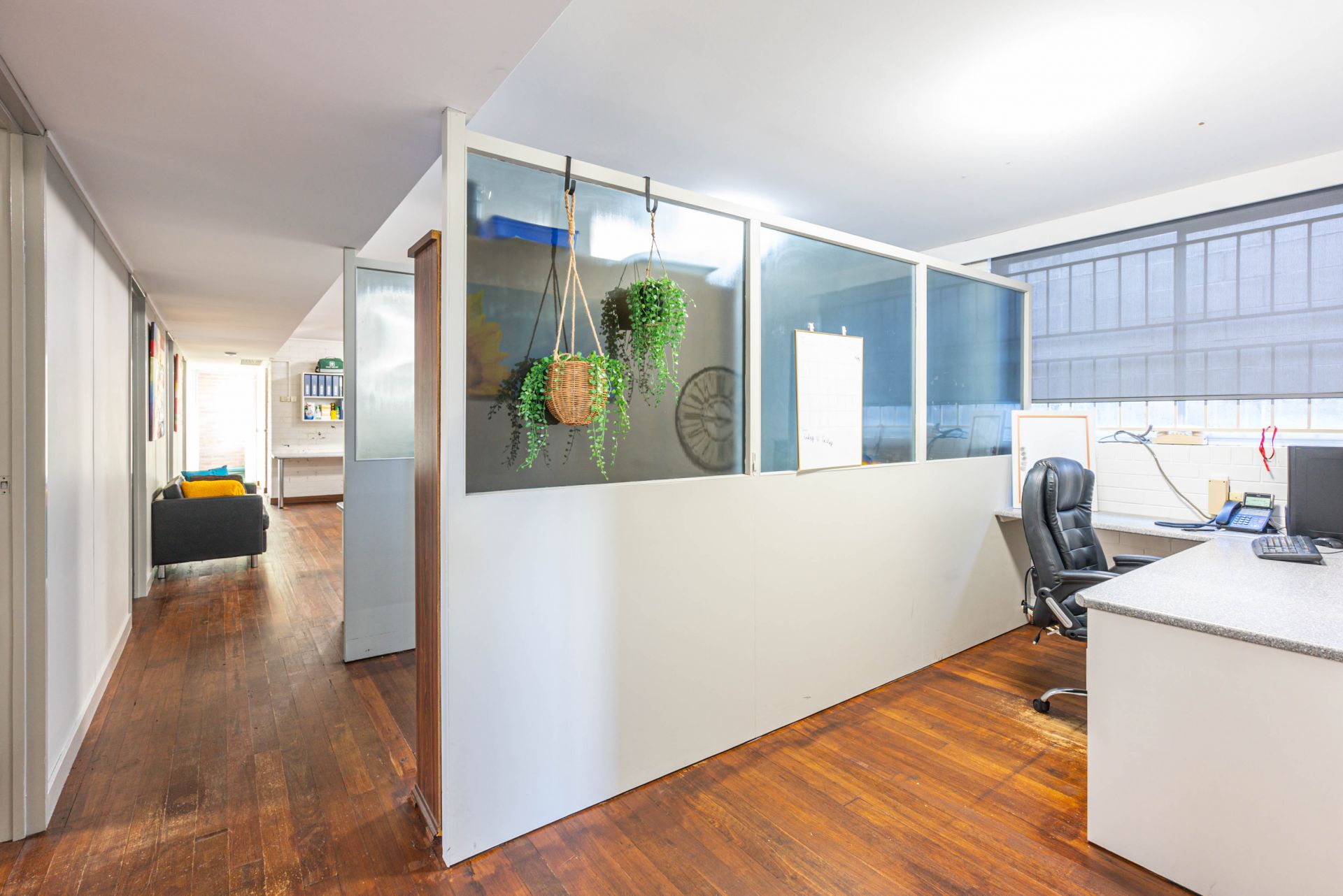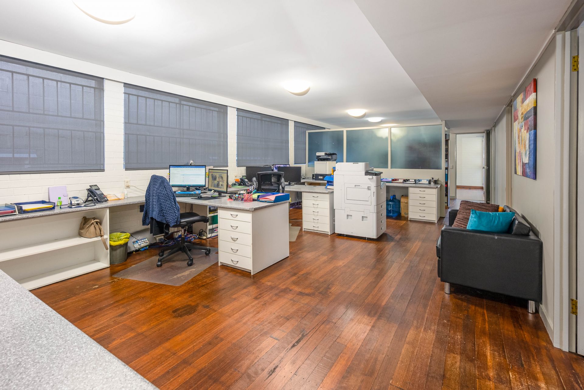 • Central open plan work area with 3 work stations and separate adjacent 4th work station area