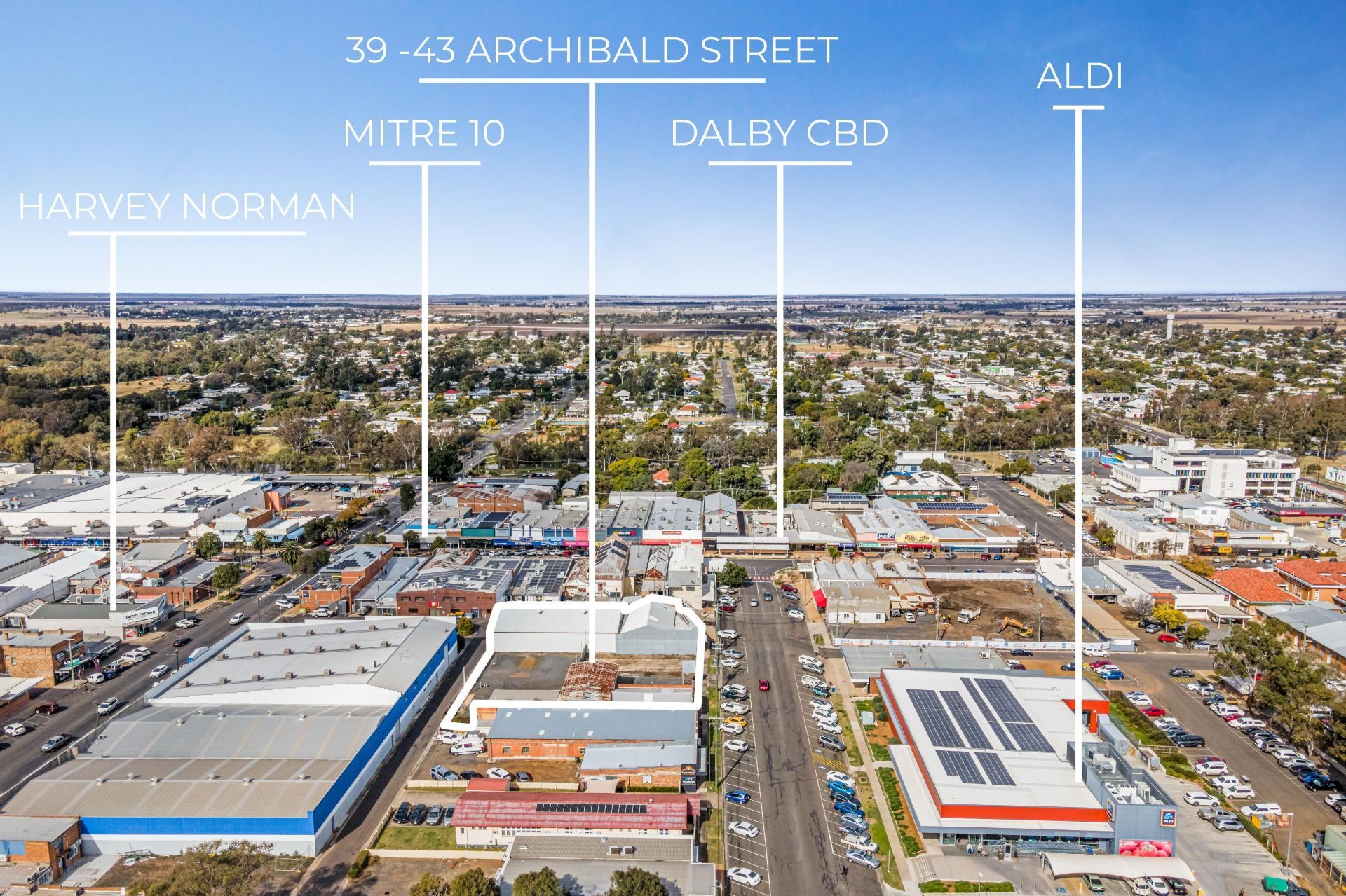Located in the main CBD precinct of Dalby, adjacent to the Coffee Club, close to Aldi, Mitre 10, Harvey Norman, and around the corner from Cunningham Street with shops, restaurants, cafes and professional offices.