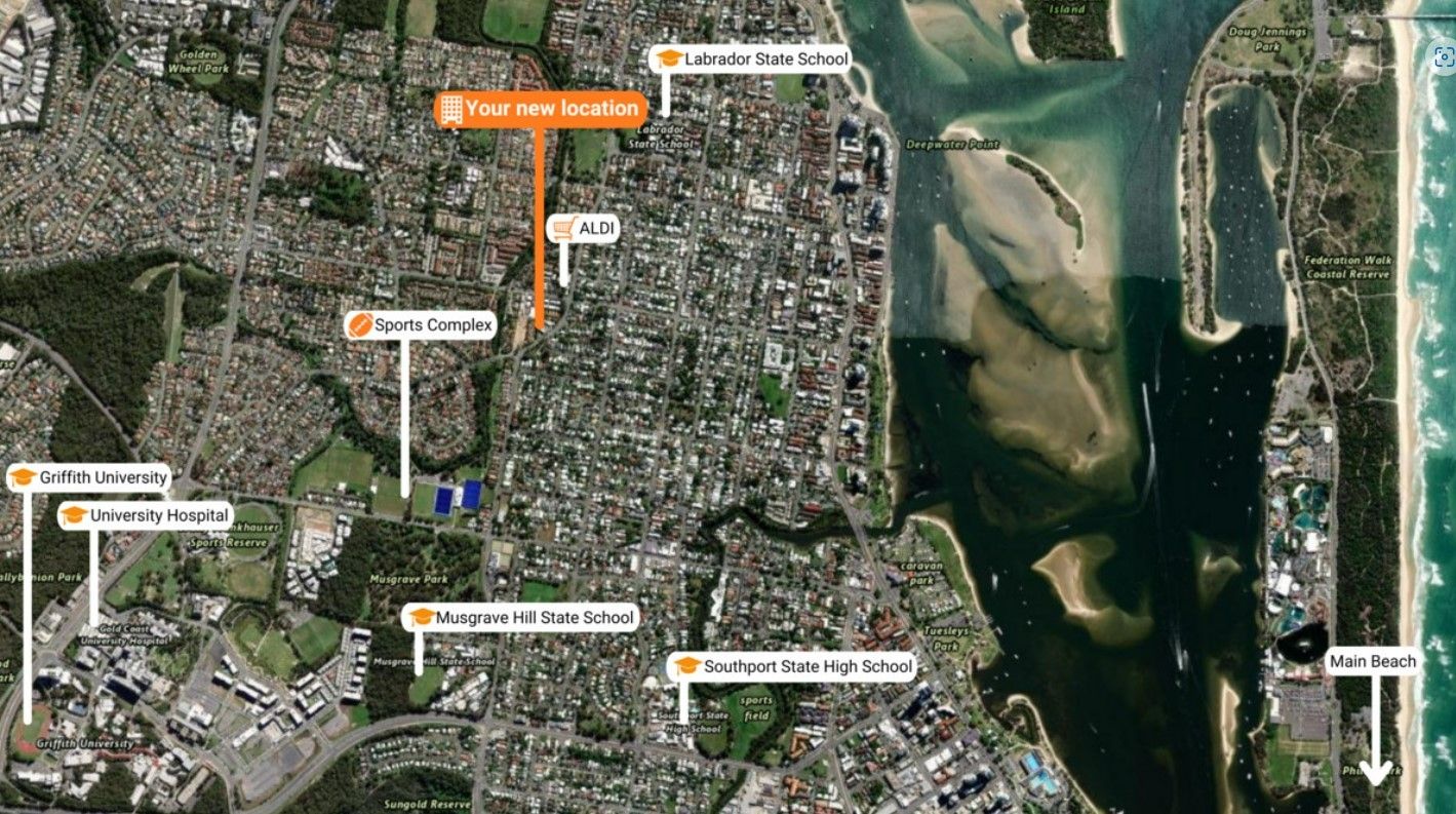 Located in the heart of Labrador surrounded by a medium density residential area of over 18,000 permanent occupants. Government road is a major road linking residents to the nearby Griffith University and Gold Coast Hospital.
