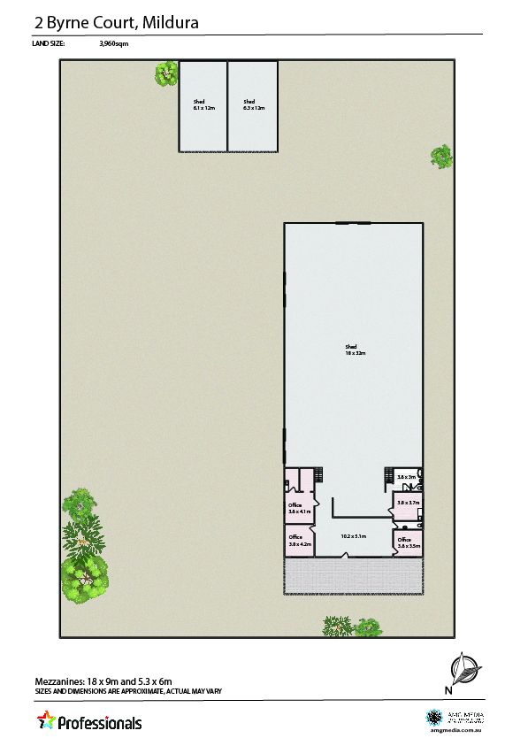 Featuring a 18m x 32m shed with mezzanine, two 6m x 12m sheds plus additional small shedding