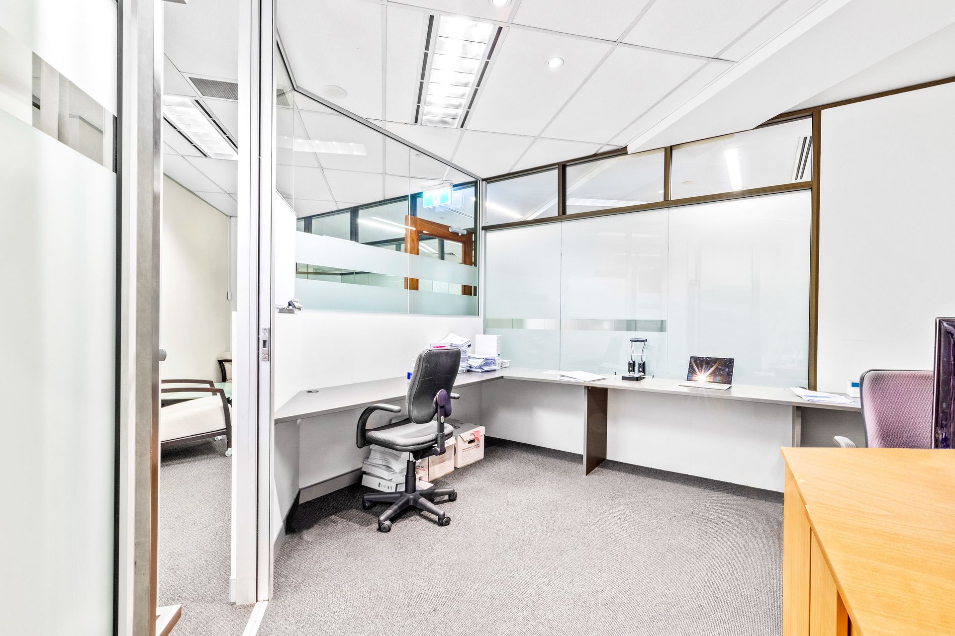 - Quality office fitout with glass partitioning