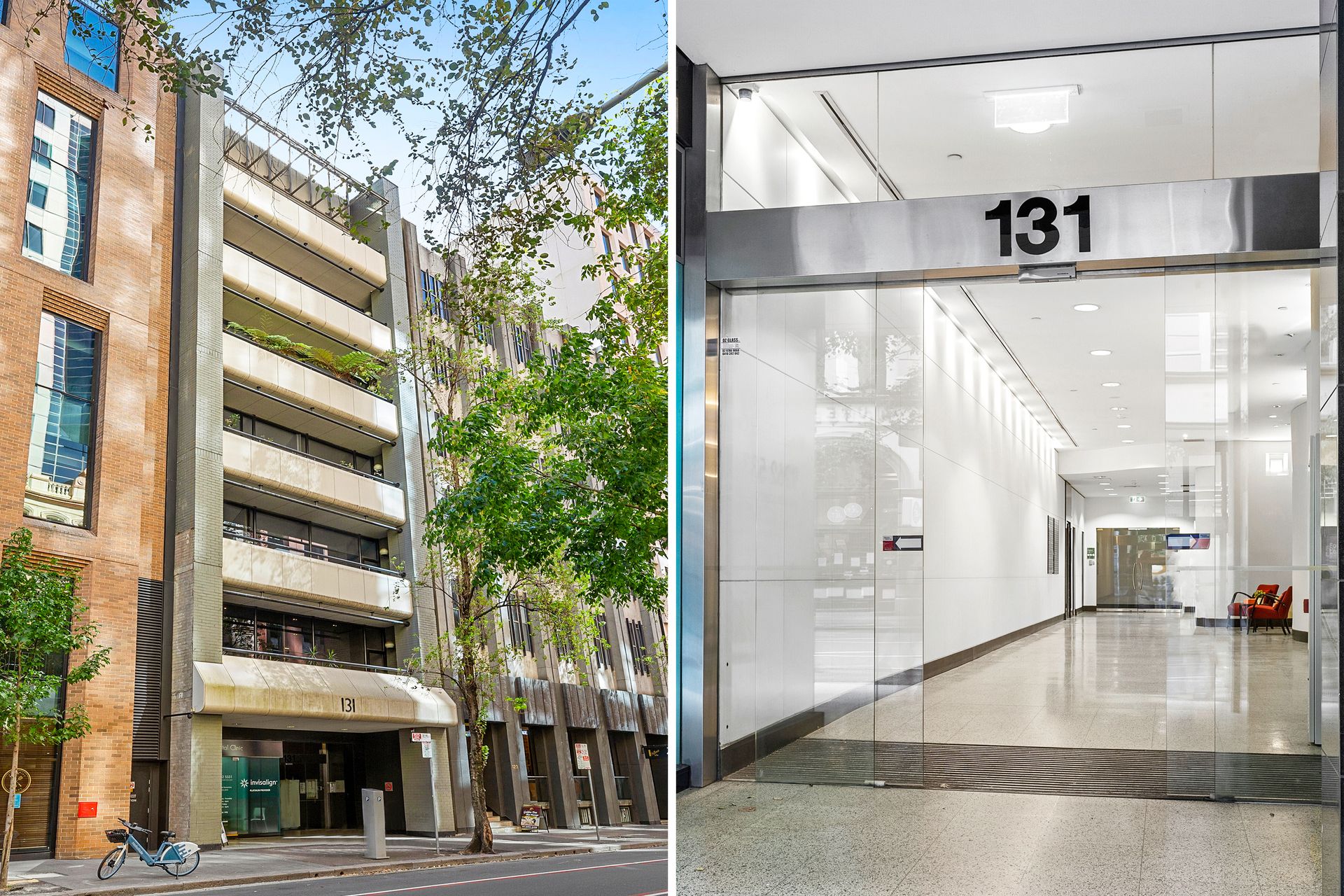 131 Clarence Street, Sydney is predominantly a commercial building comprising only 16 strata units across 8 levels. The building was constructed circa 1982 with dual street frontages to Clarence Street and Kent Street and the main lobby area is impressive with ultra-high ceilings and modern interiors throughout.