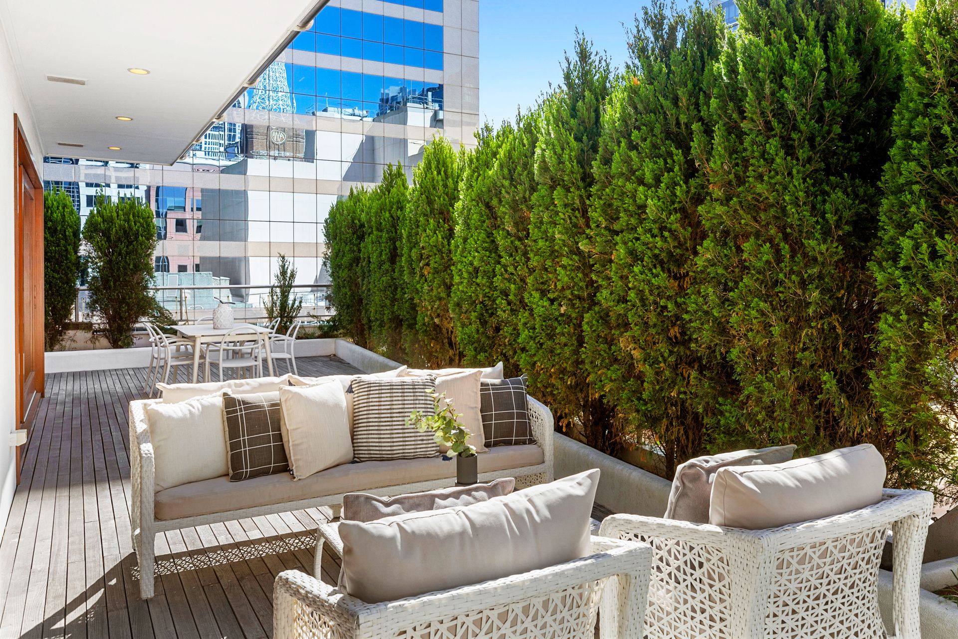 Unit 18 is accessible via Level 6 and was previously occupied by an accounting business however with Council approval, this space could be incorporated with Levels 7 and 8 for commercial or residential purposes. Internally Unit 18 is fitted out with a combination of meeting rooms, executive offices and open plan workspaces along with internal kitchen facilities and access to a full-length outdoor terrace area overlooking Kent Street.