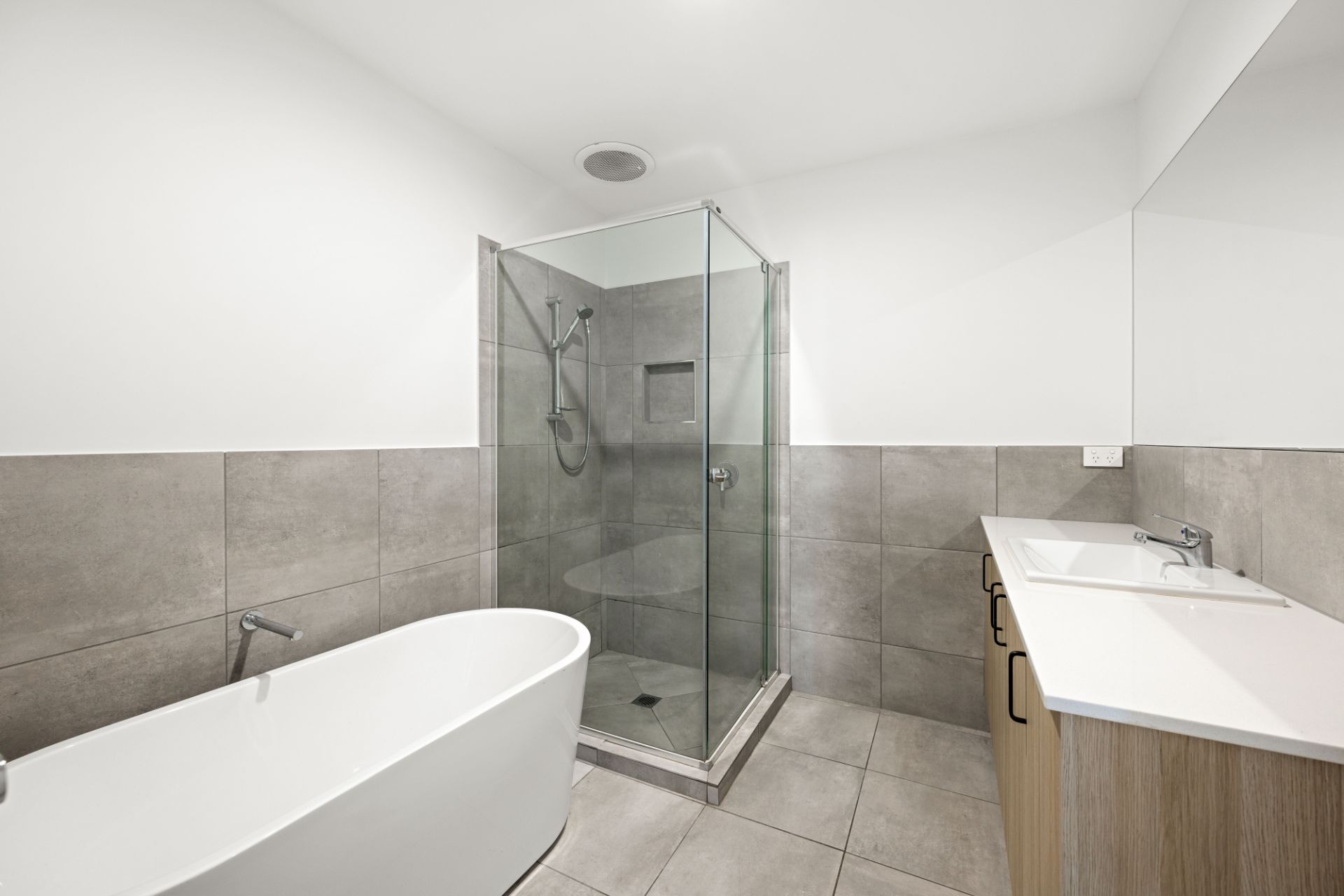 - Ducted air-conditioning on upper level, split system in office