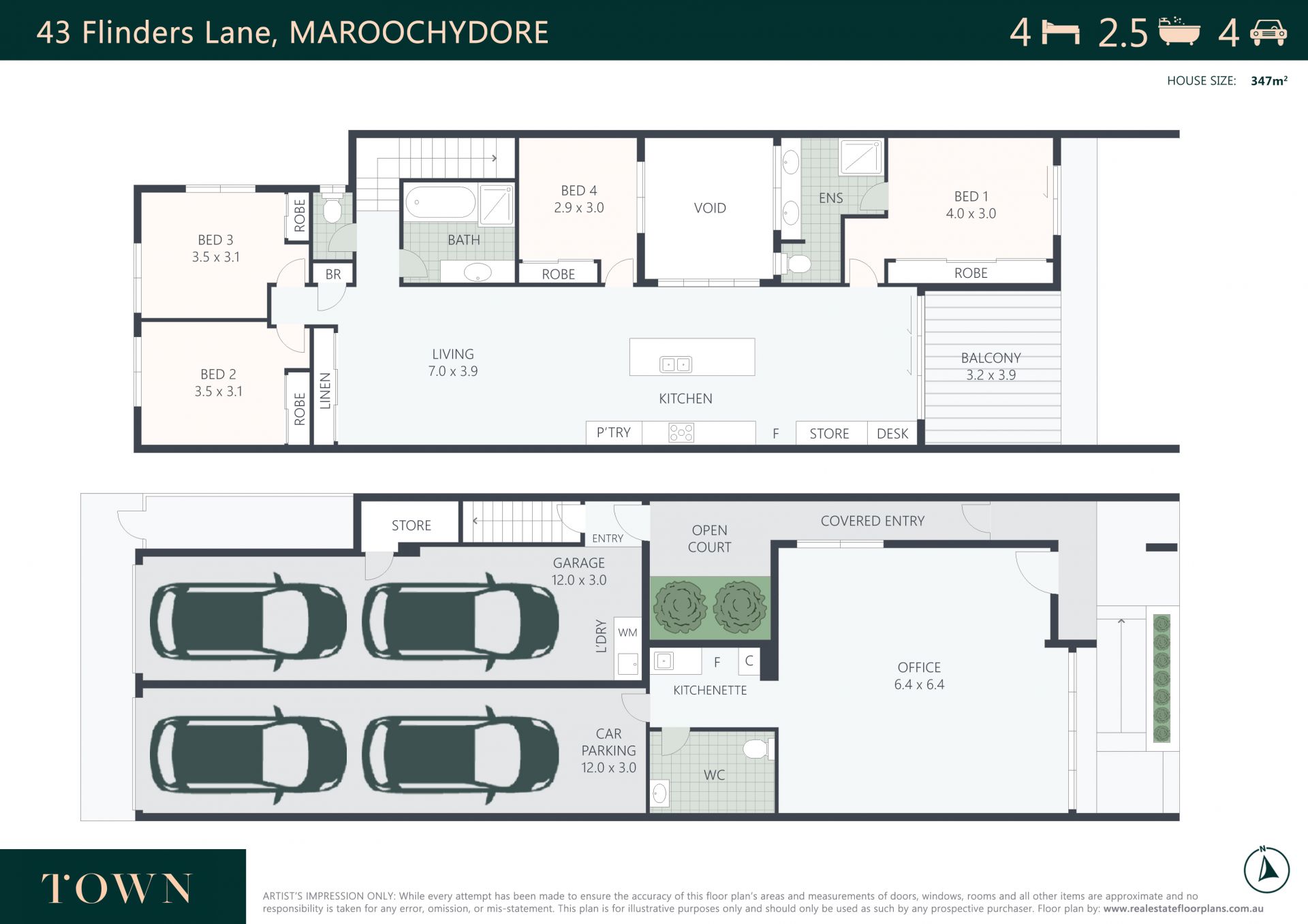 The upper level comprises four bedrooms, two bathrooms, quality modern kitchen, open plan living, study nook, and east facing covered balcony (also accessed from master bedroom); it is family sized and easy care, to minimise maintenance and maximise lifestyle.