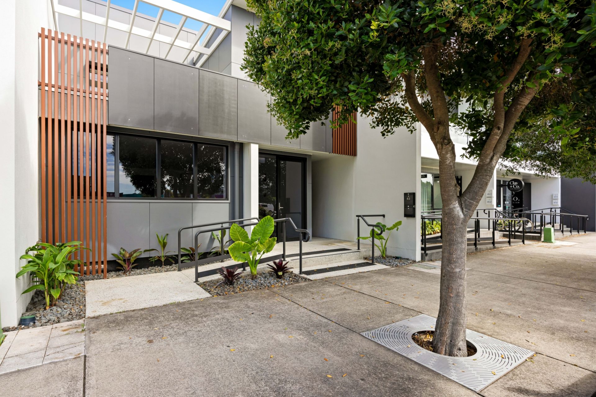 Across two light-filled levels it comprises an air-conditioned self-contained 6.4x6.4 office space with street frontage and access on the lower level – along with a kitchenette, powder room, and north-facing courtyard. A lock-up garage with tandem parking and laundry facilities, plus adjacent tandem parking for a further two vehicles is access from the rear via MacLeay Lane.
