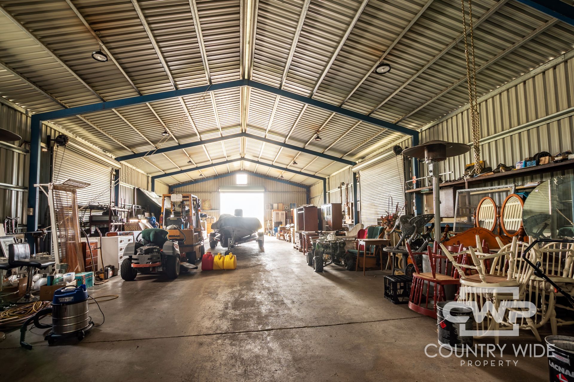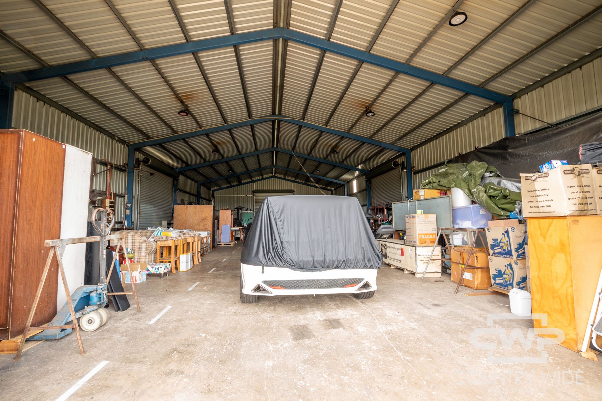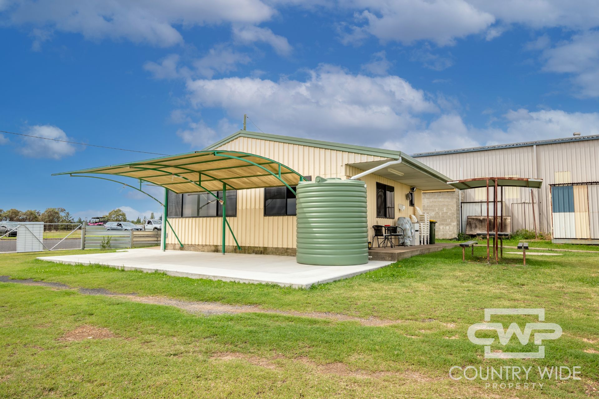 The 25x12m shed features 4 roller doors and three phase power making it a great versatile space. With a 8x8m office/lunch room with skillion car port, there is everything you need to run a growing business.