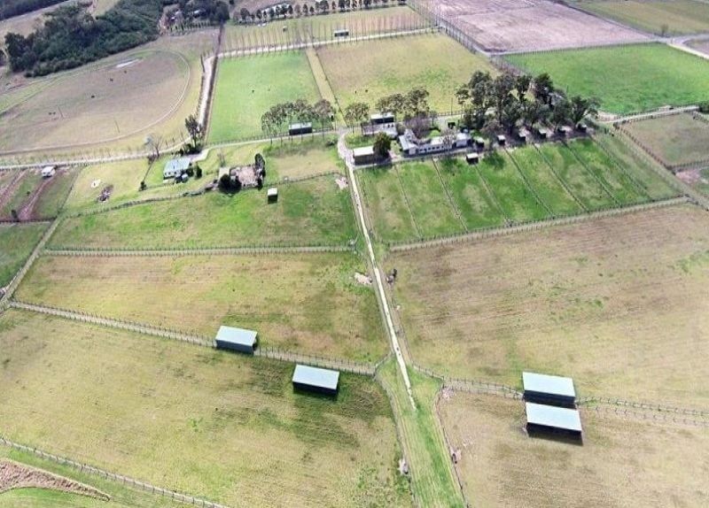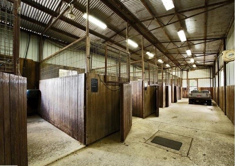 Facilities include nine large steel day yards, some with shelters, eight mesh yards with shelters, and seven large pastures with shelters, all with automatic watering troughs. Large stable complex with 12 boxes, as well as, a tack room, vet room, washroom, kitchenette, and lunch room for employees. Also a dressage arena, and round yard. large undercover hay store, machinery shed, and shelter with a large tool shop and workshop..