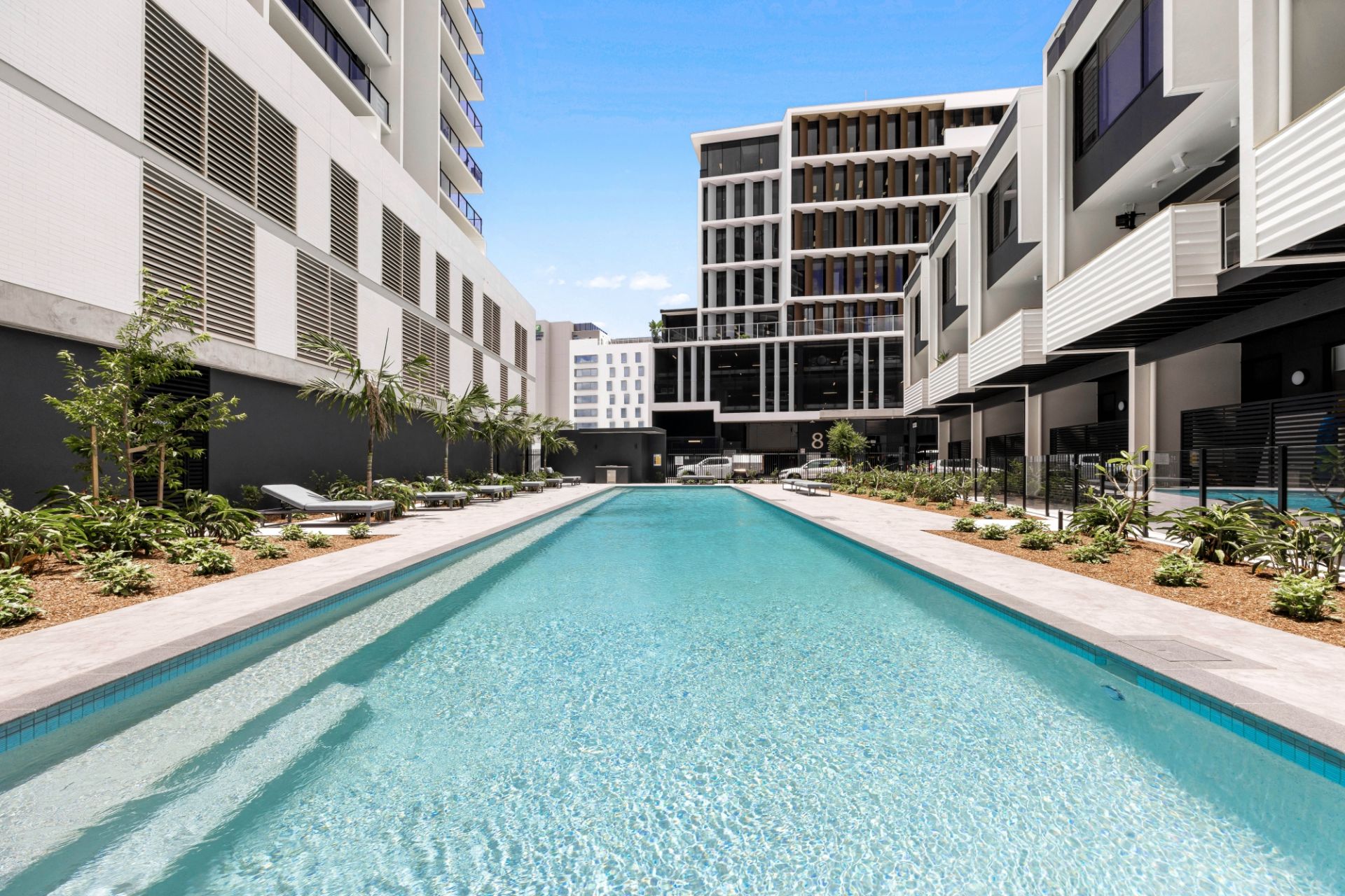‘The Terraces’ is part of the ‘Market Lane’ development – and residents have access to fabulous onsite facilities including 25-metre resort pool and BBQ area, along with private rooftop dining room and lounge bar on the 13th storey of Tower 1. Facilities and buildings are maintained by onsite management and there is 450m2 ground floor retail and dining to patronise.