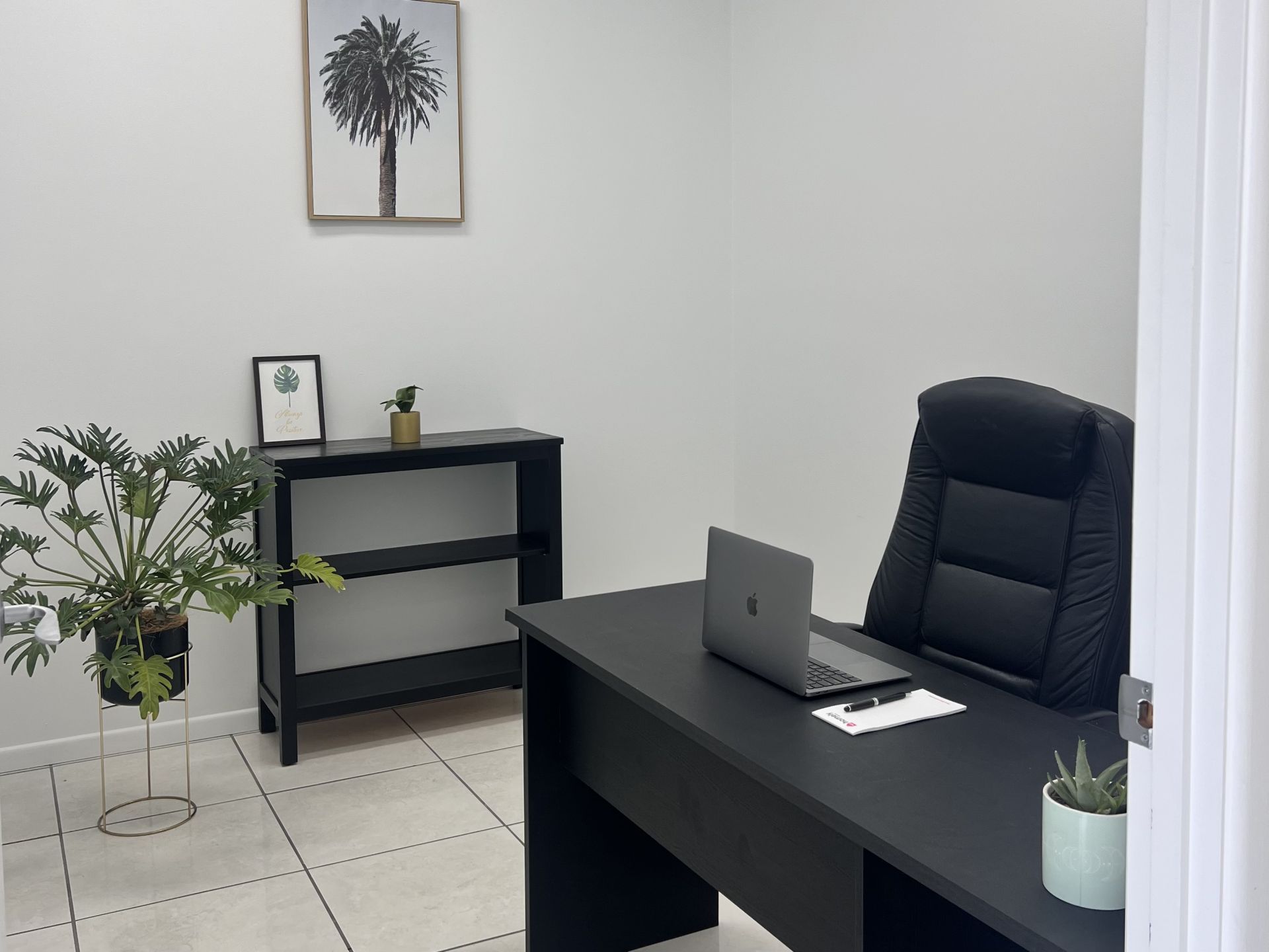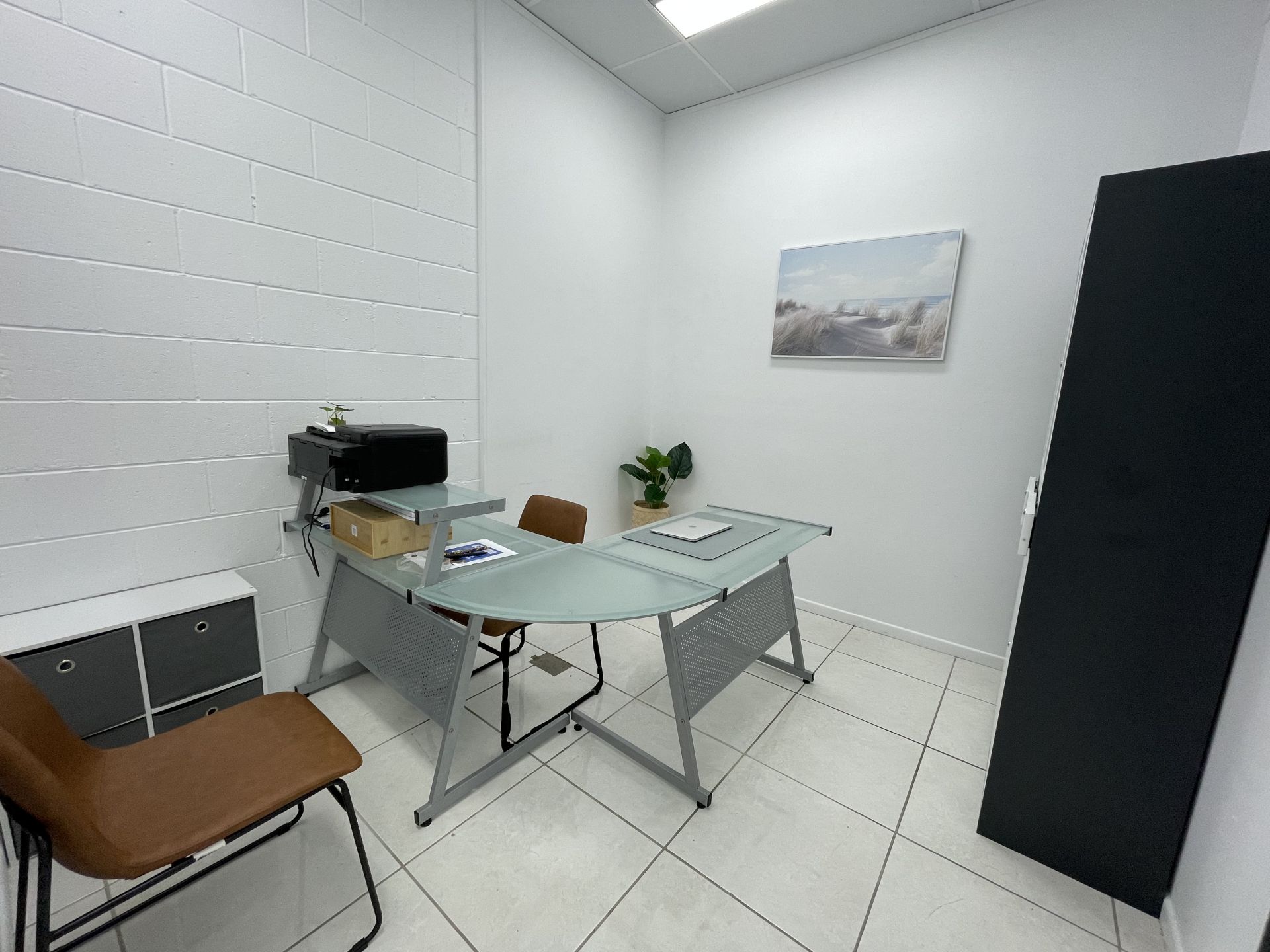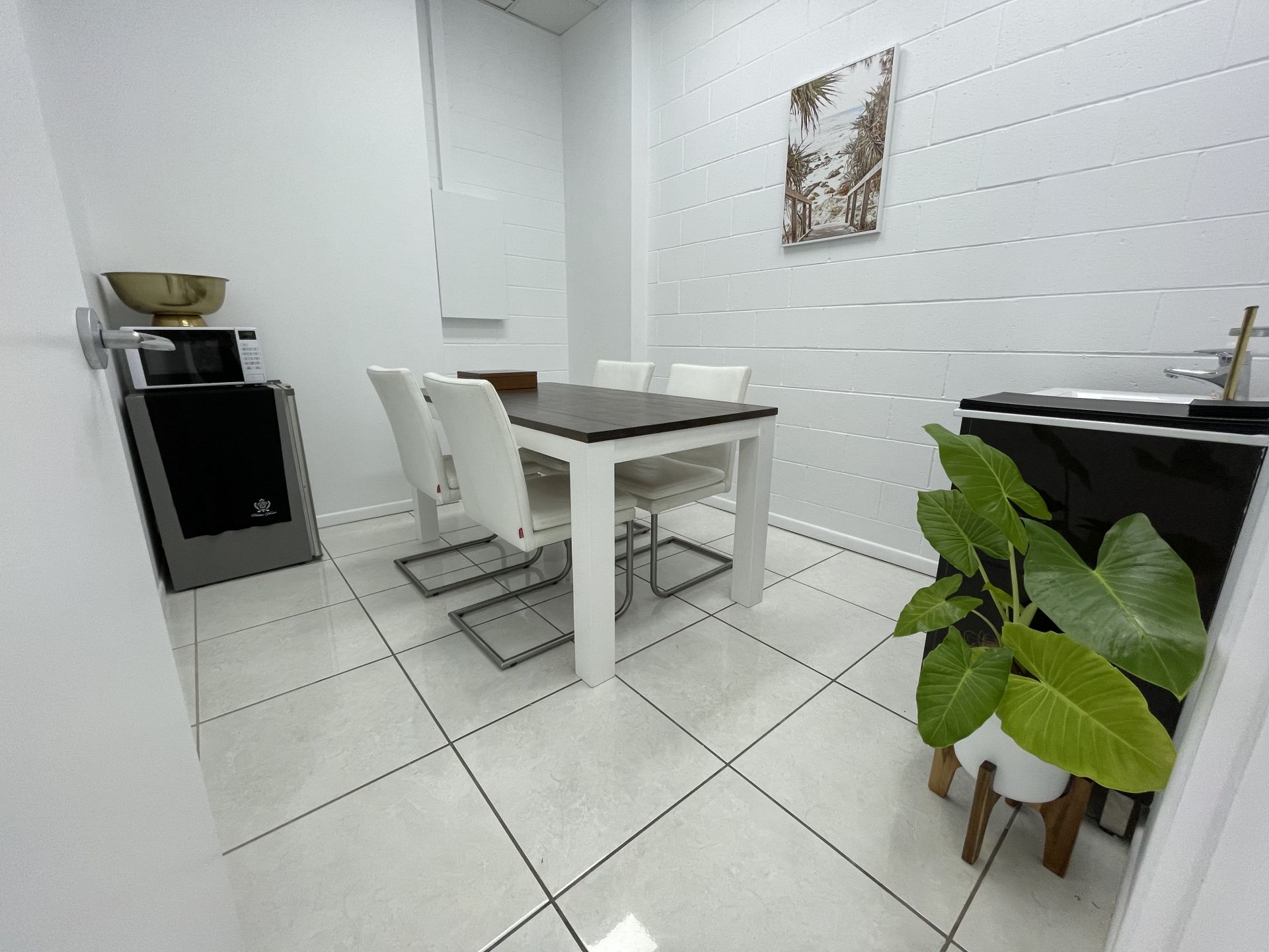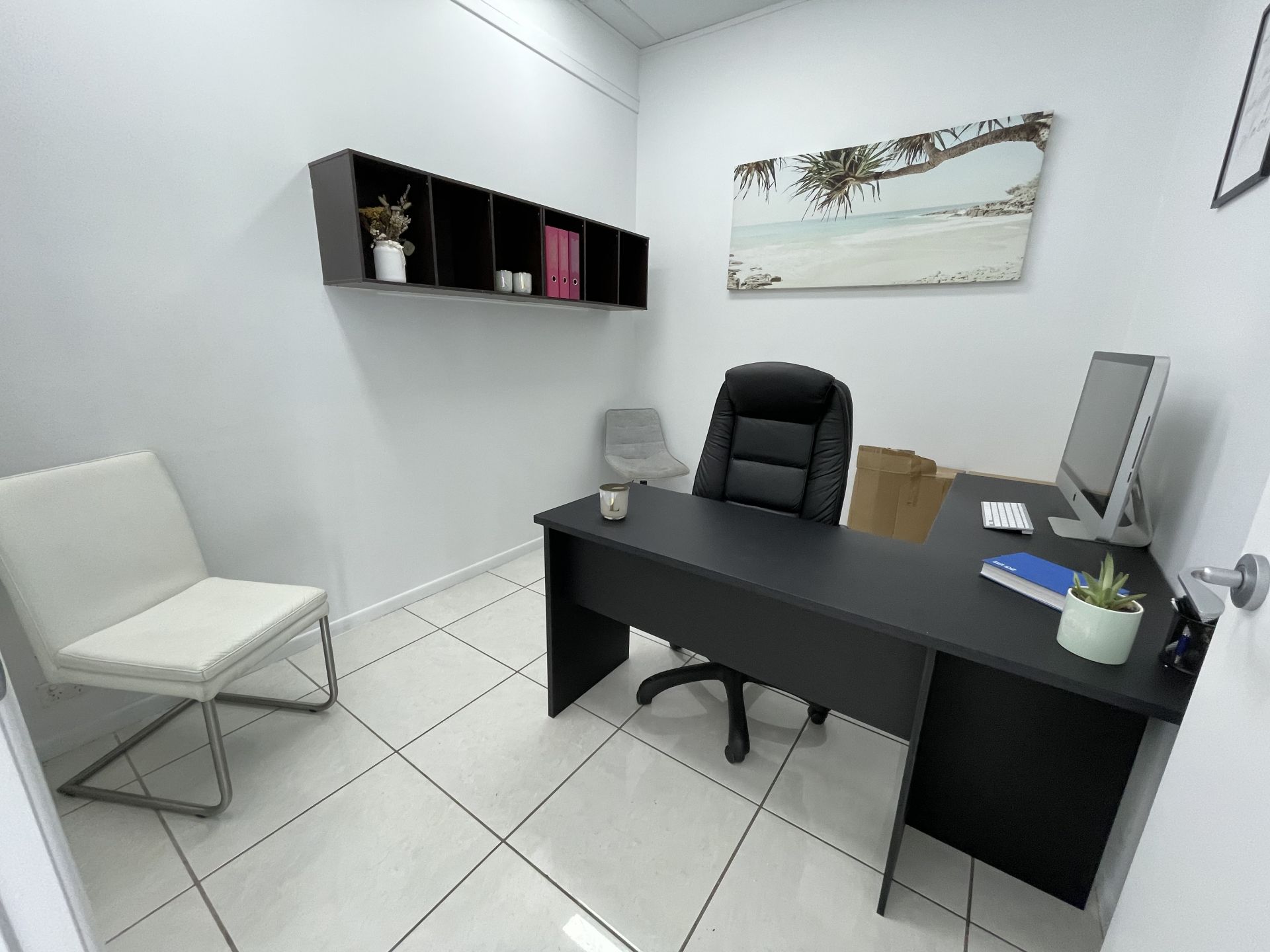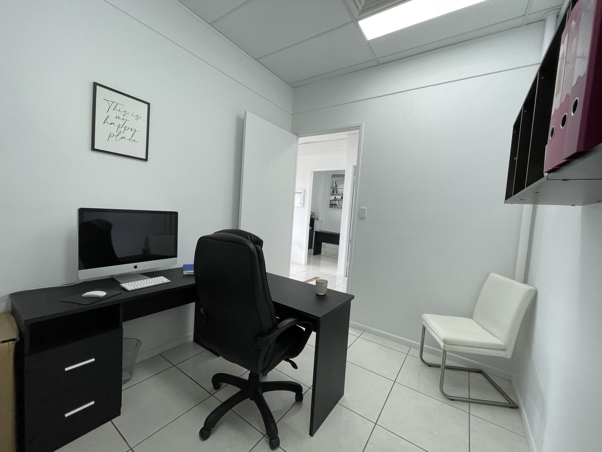You have a personal office plus: Boardroom, staff room, kitchenette.