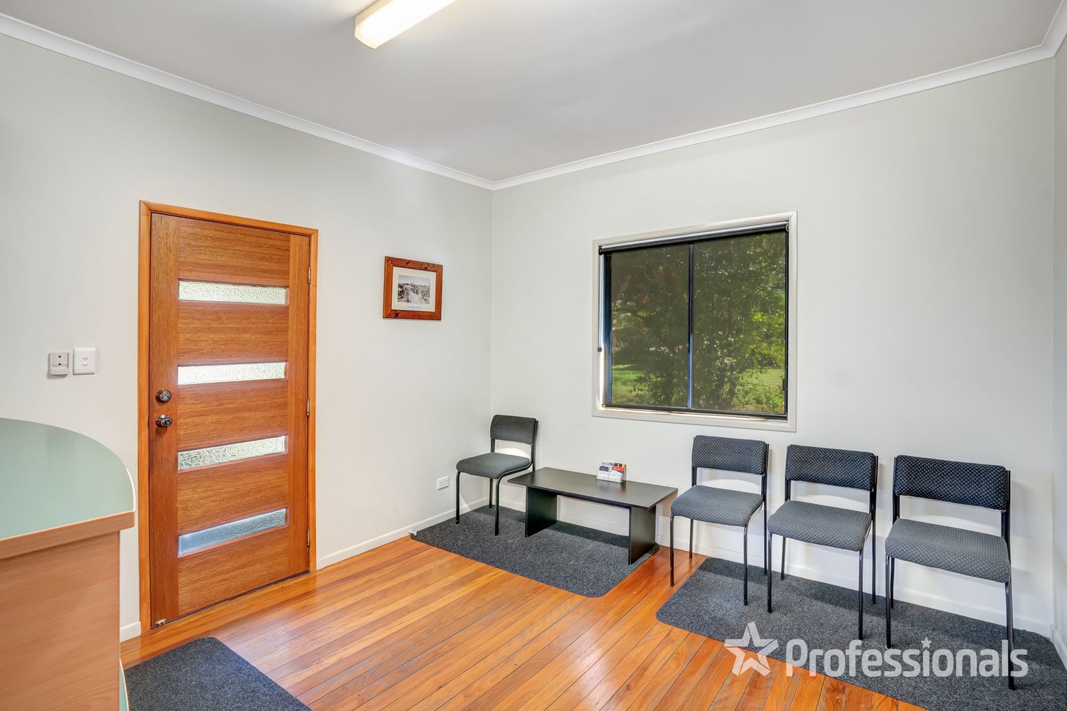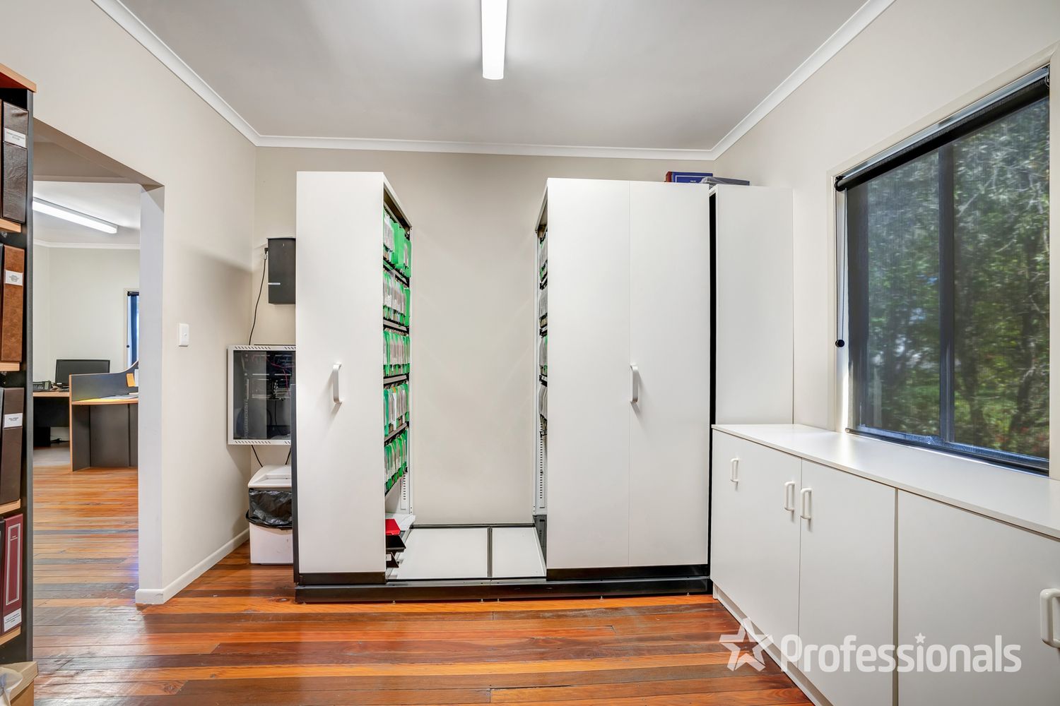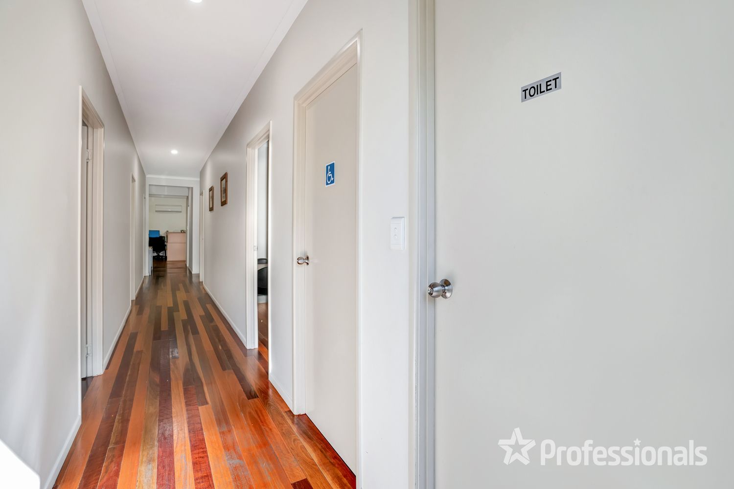 • A central hallway gives access to the five offices, filing room, printer area, staff room and toilets.