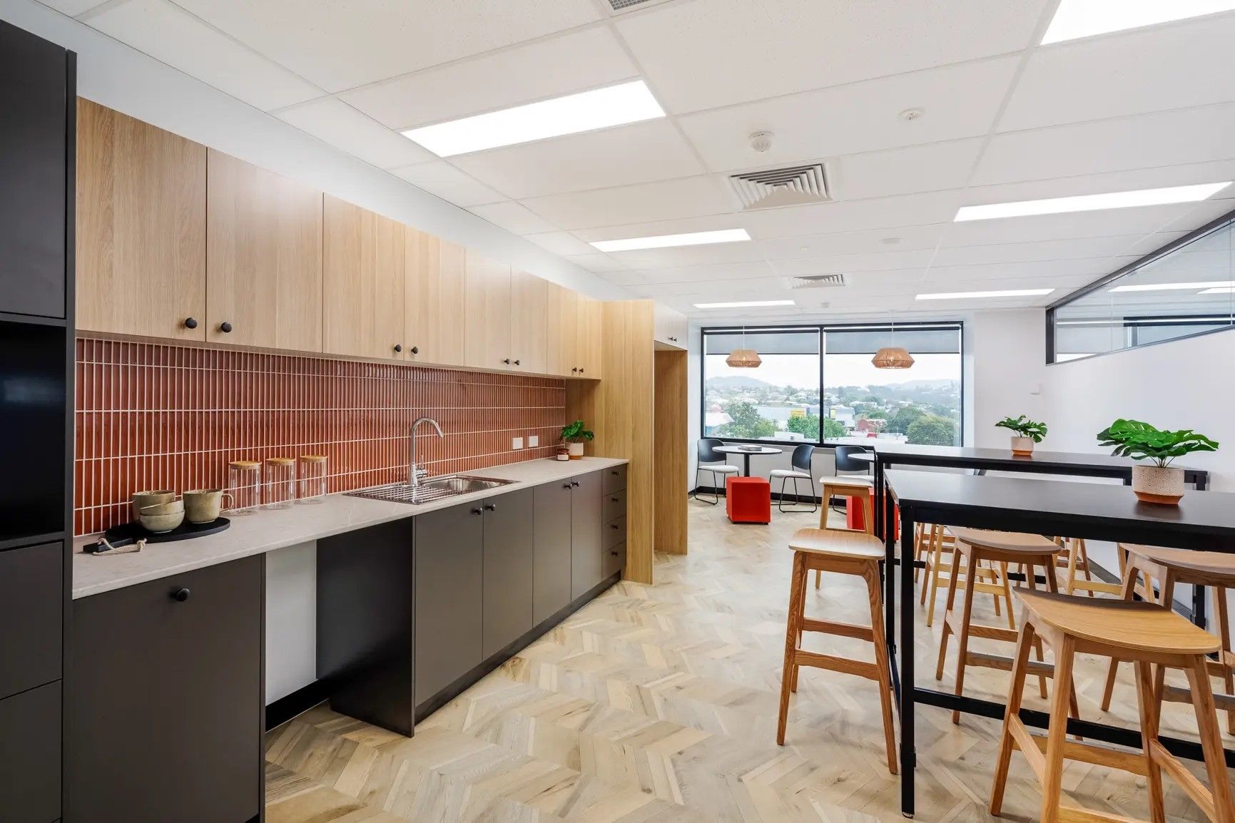 - 10-person boardroom and 6-person meeting room both with Brisbane River views