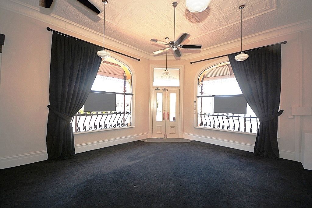 Be seen in this high profile iconic building with its bull-nose verandas and ornate lacework Completely renovated, attention to detail has this classic Victorian building showcasing its former glory. Open retail space ideally lending itself to professional rooms, medical, gallery or fine arts, the property is fitted with quality carpets and window coverings and offers lots of natural light. The main showroom is 7.8m X 5.9 m with feature double doors, reverse cycle split system air conditioning and overhead fans. A separate 5.6m X 2.9m office area has bonus built in storage plus modern kitchenette facilities, toilet and hand-basin.