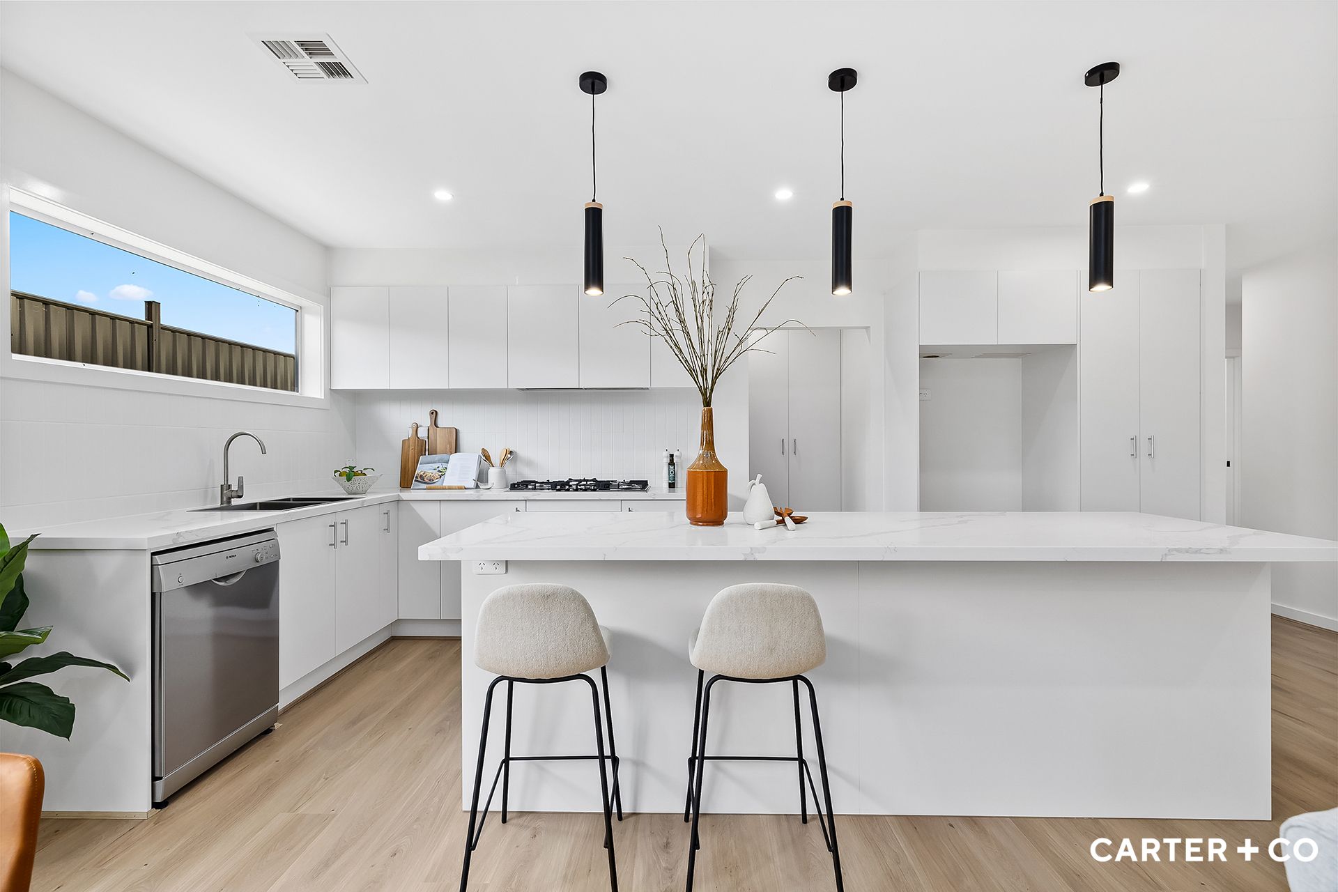 + Large island bench with feature pendent lights