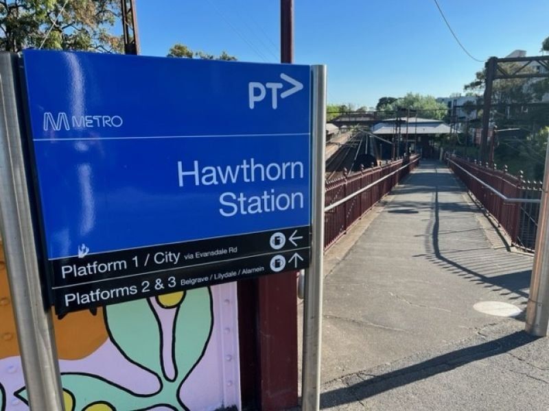 Tram stop within meters of the front entrance and one minute walk to Hawthorn train station. Ample public parking in the area.