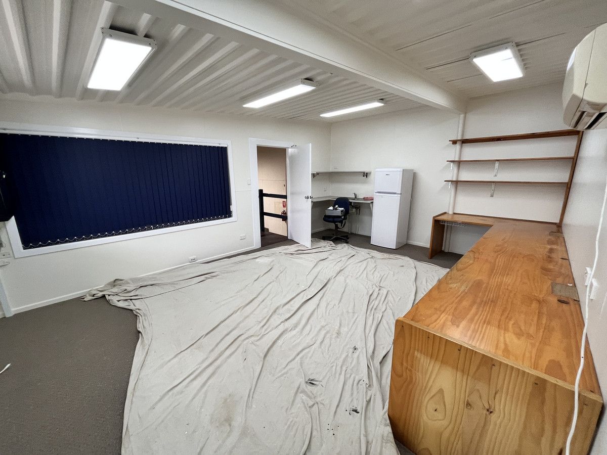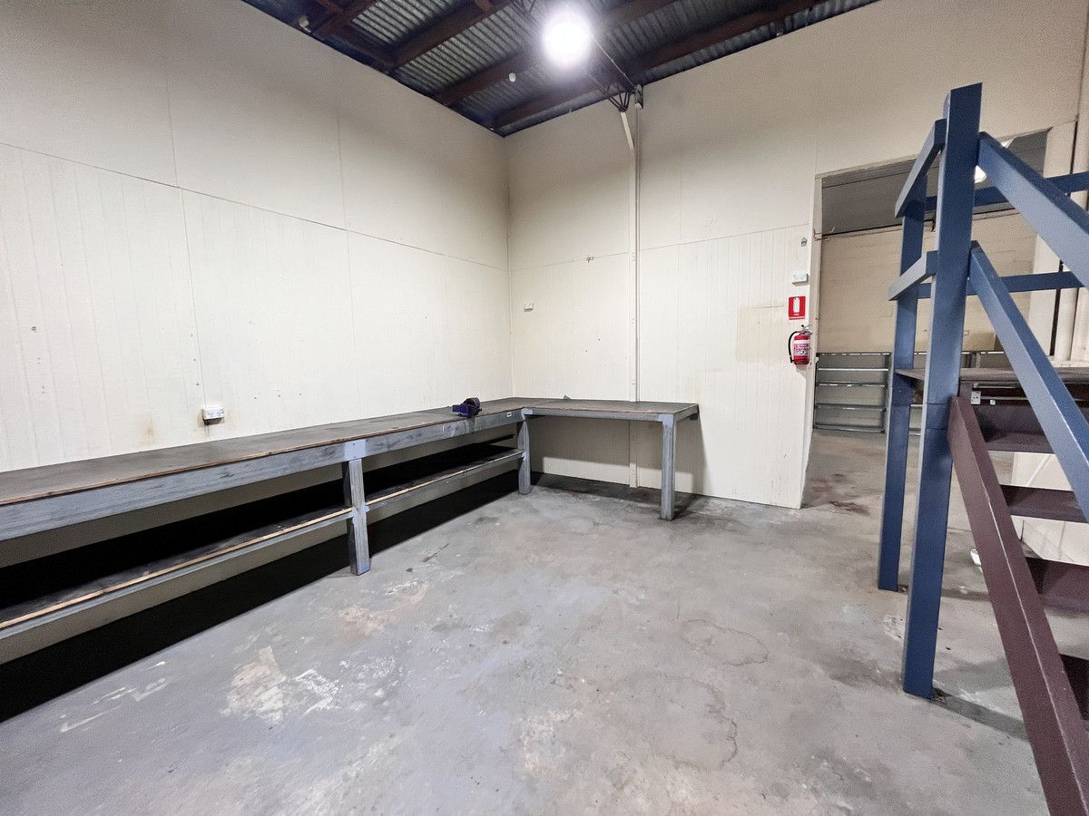 144 sqm of workshop and office space with 3 phase power, security camera system, electronic fob access, electric high level door and industrial racking included.