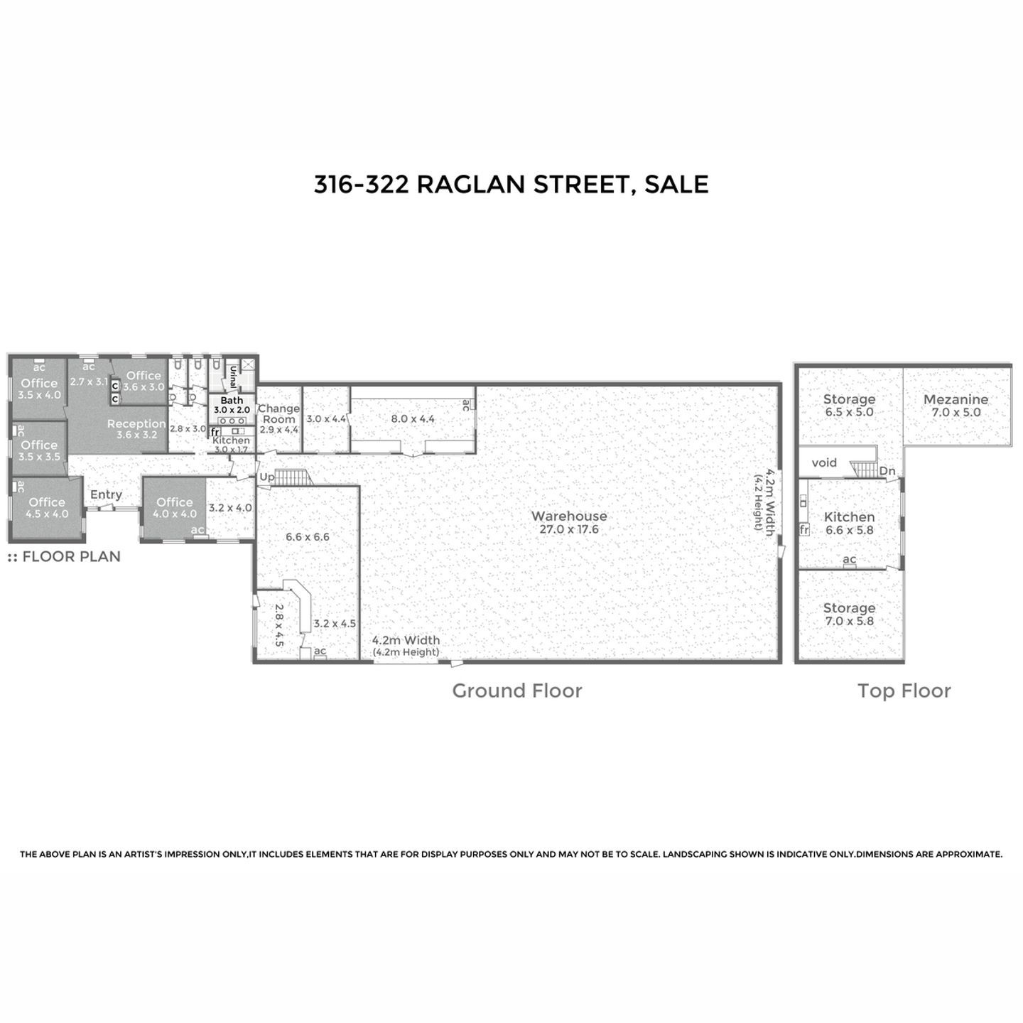 - Main warehouse has side door and rear door entry with 4.2m high clearance.