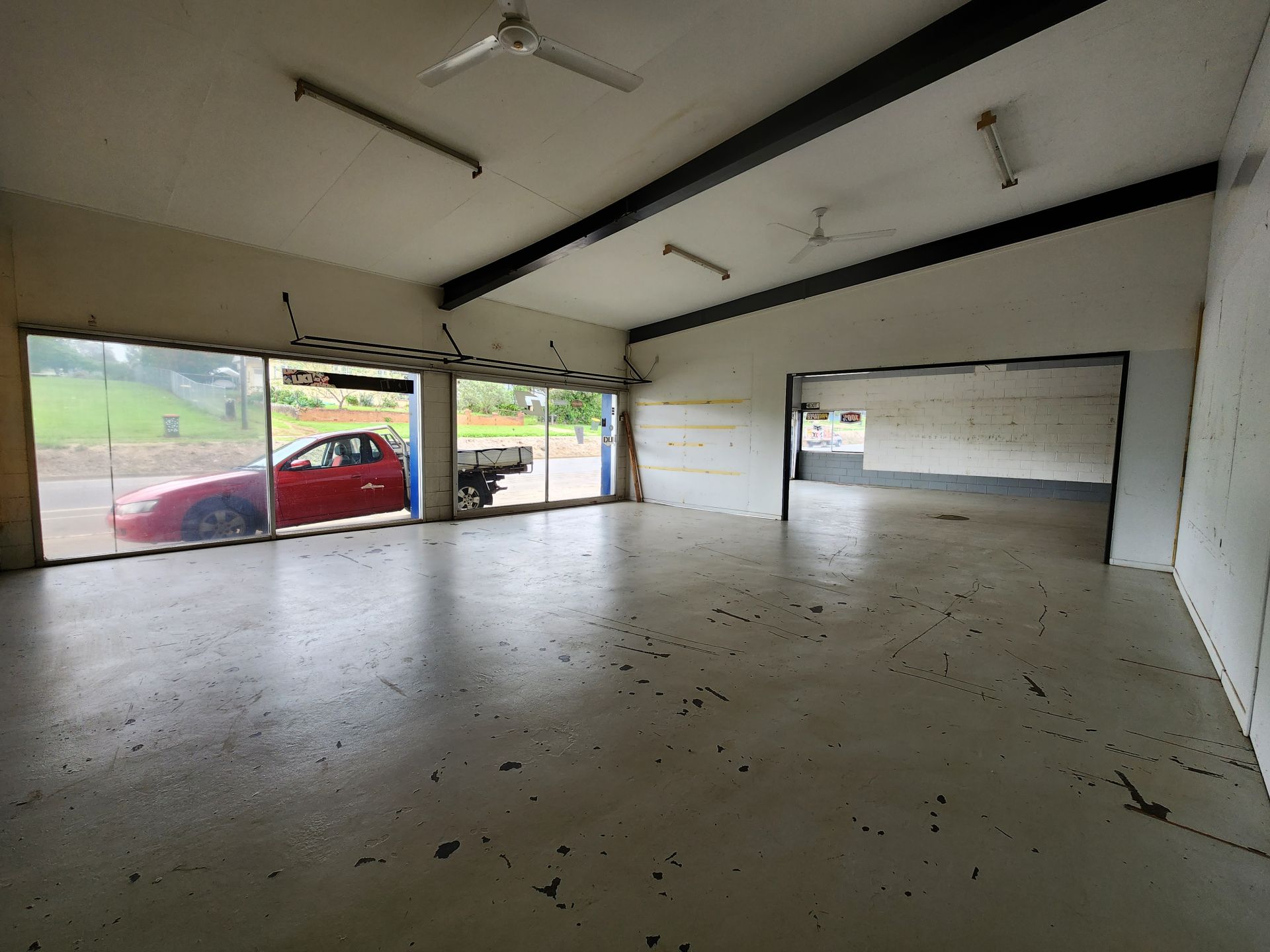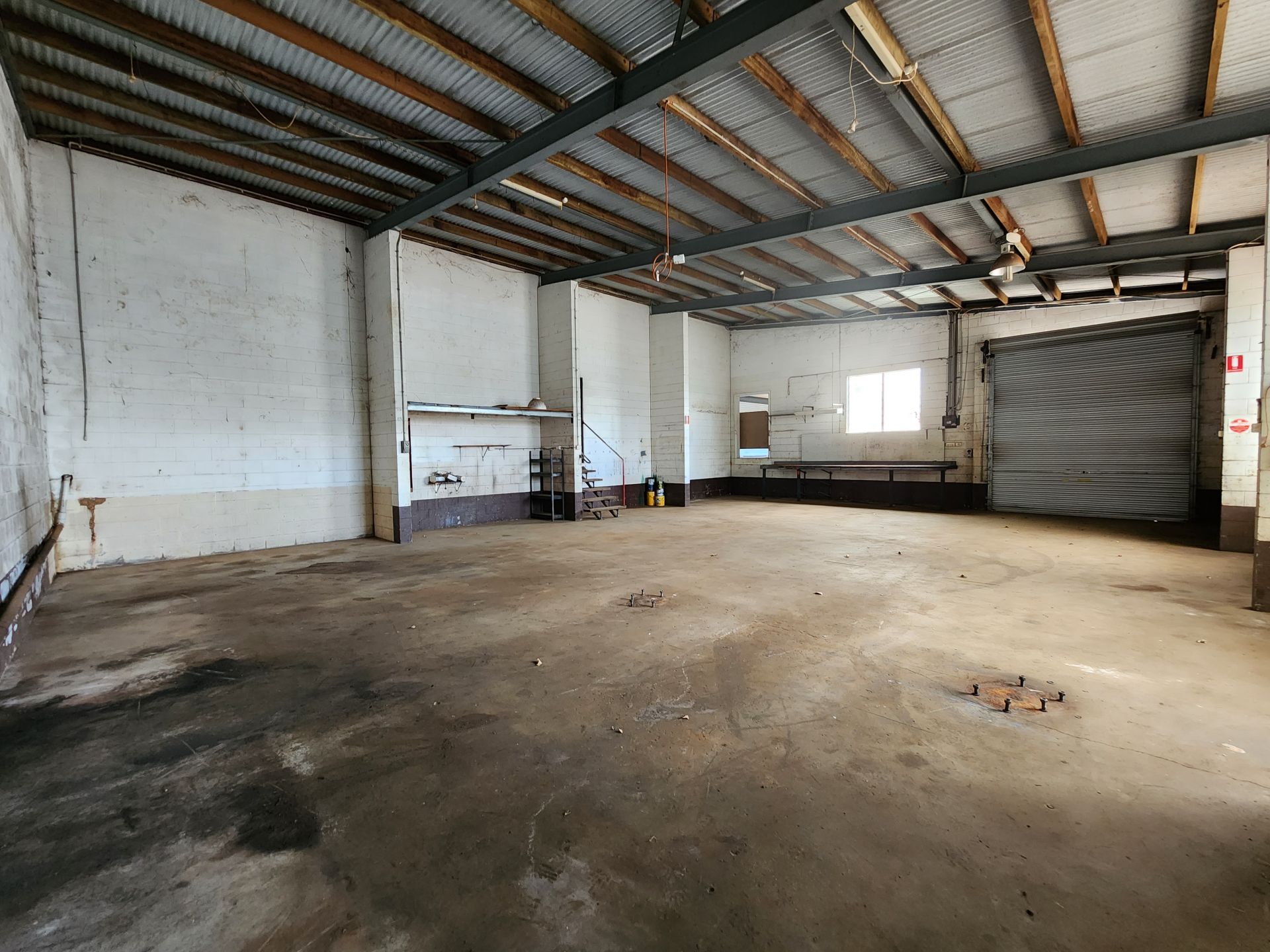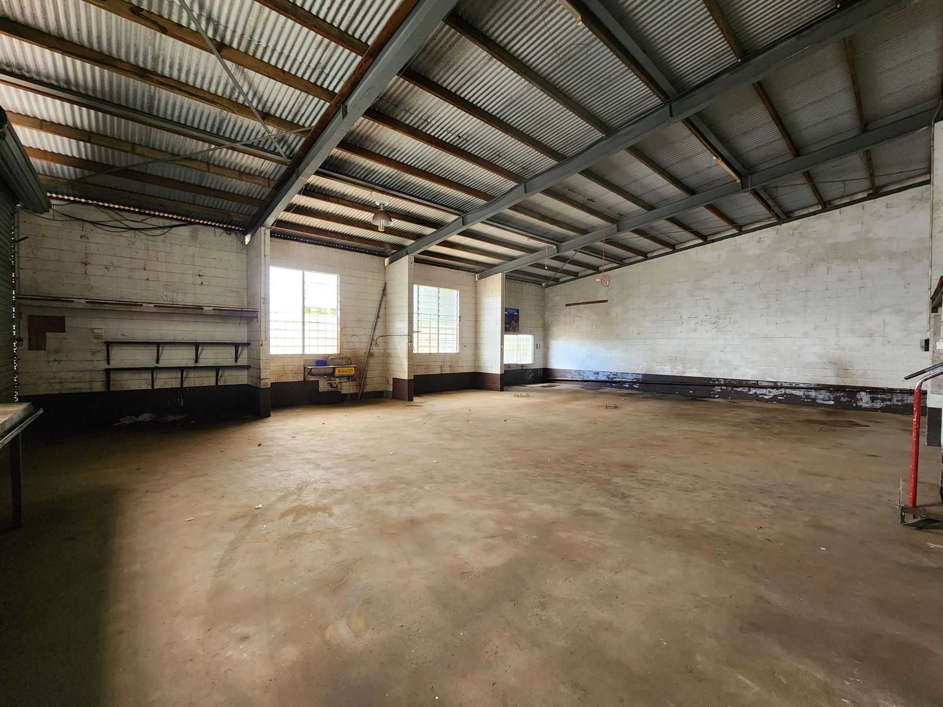 The improvements consist of a modern split style showroom and workshop. Block and cement construction with wide span steel ceiling offering a large, airy and bright showroom and the rear workshop with high clearance doors and room for lifts and vertical storage.