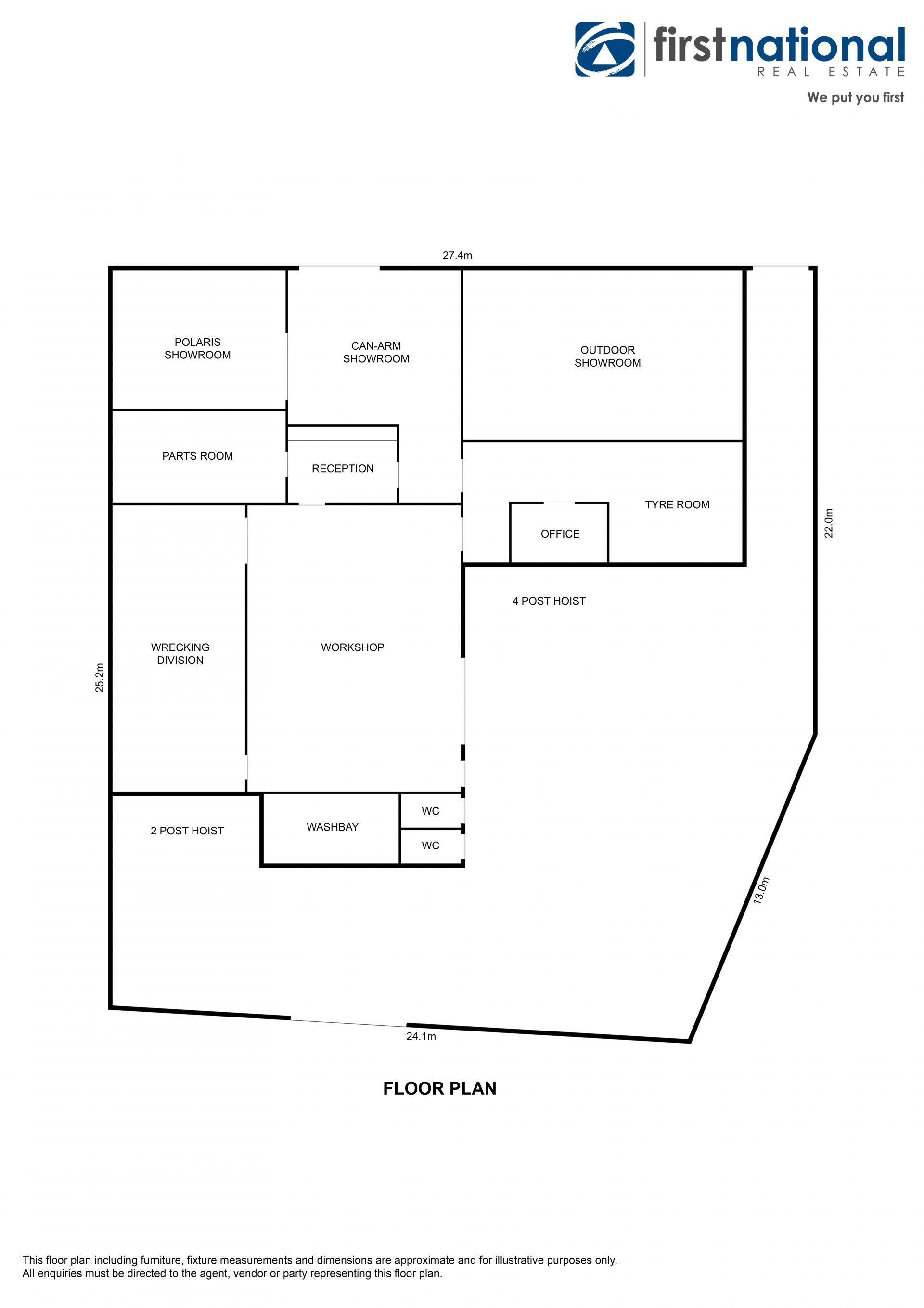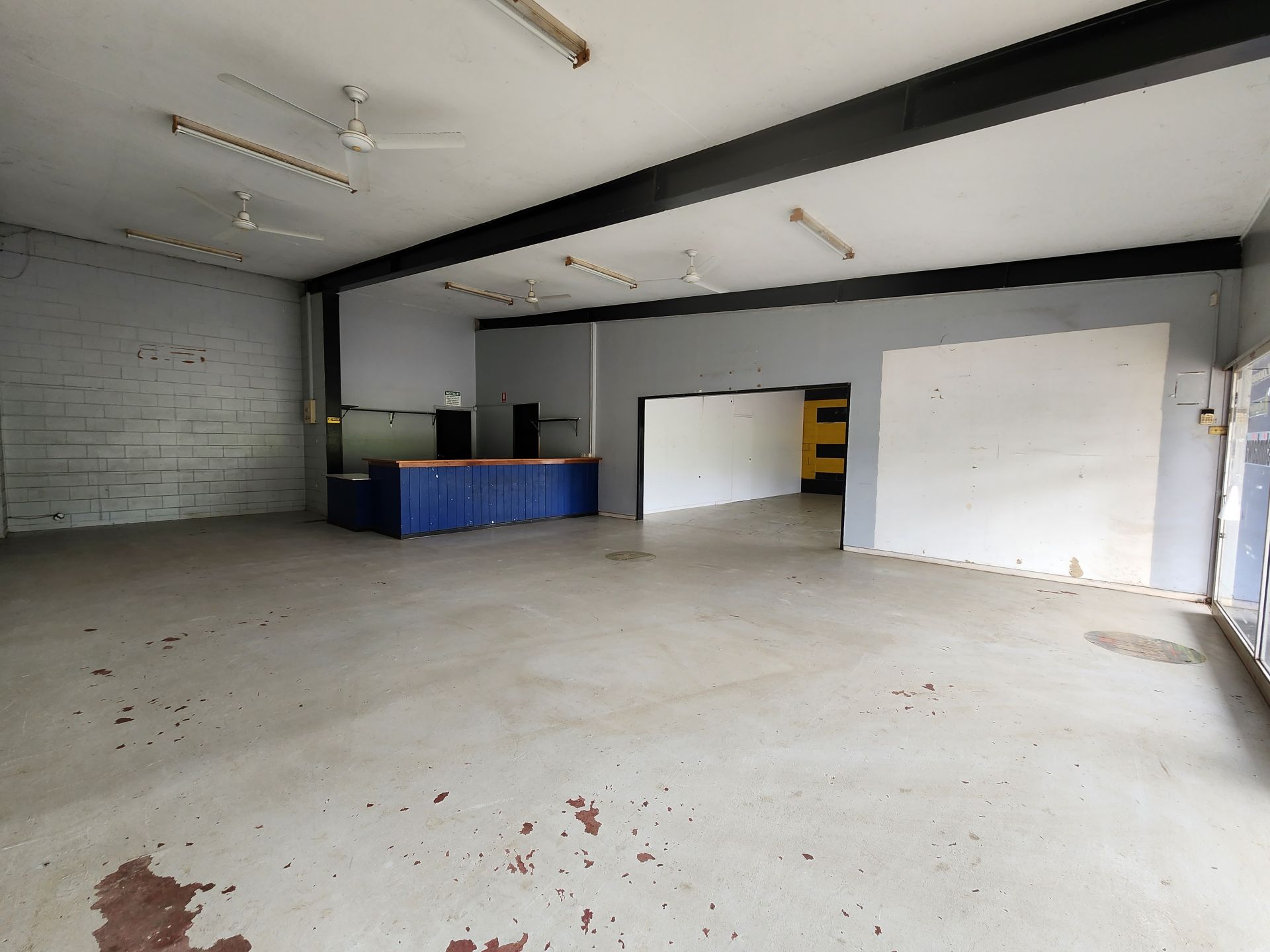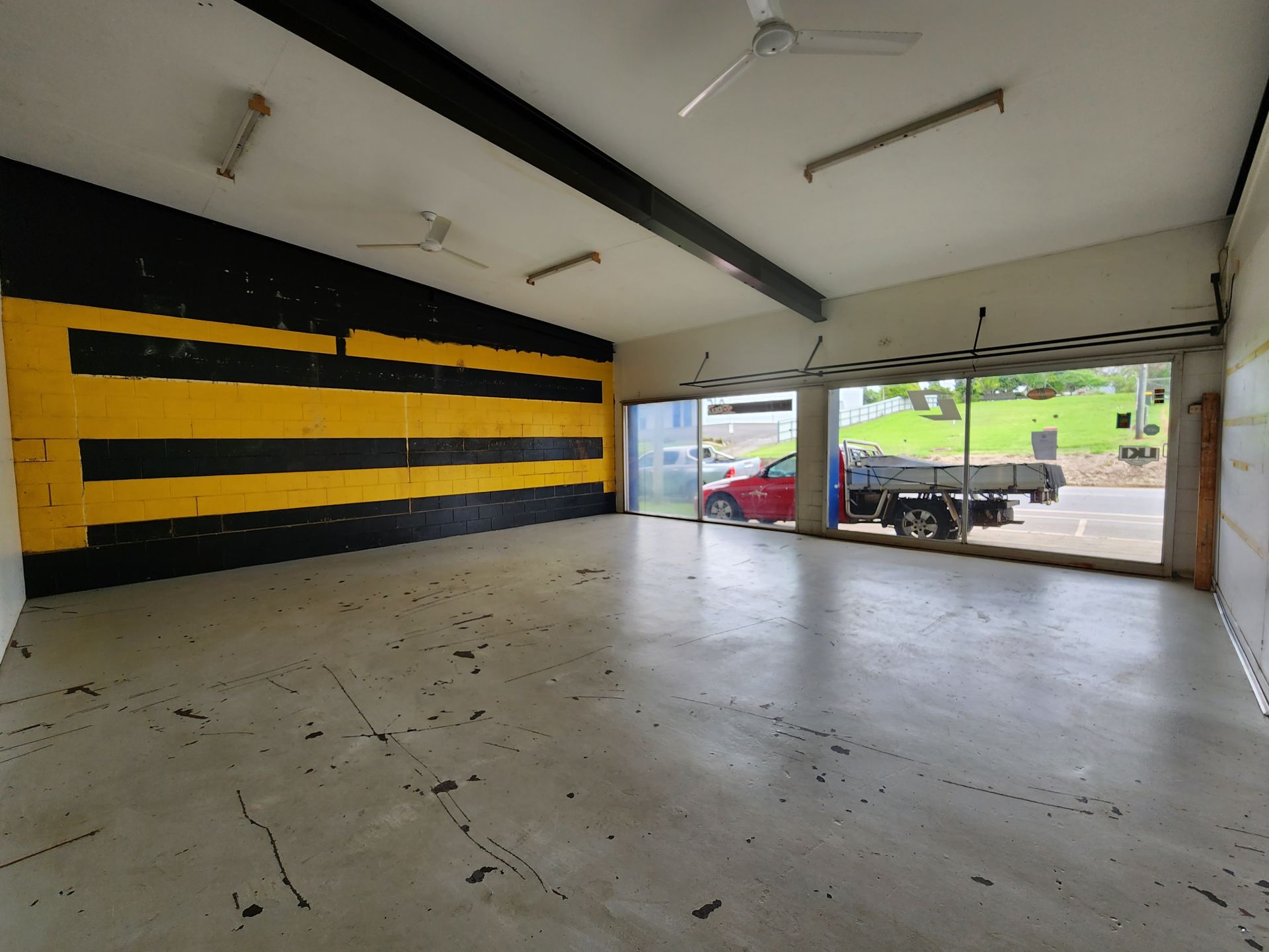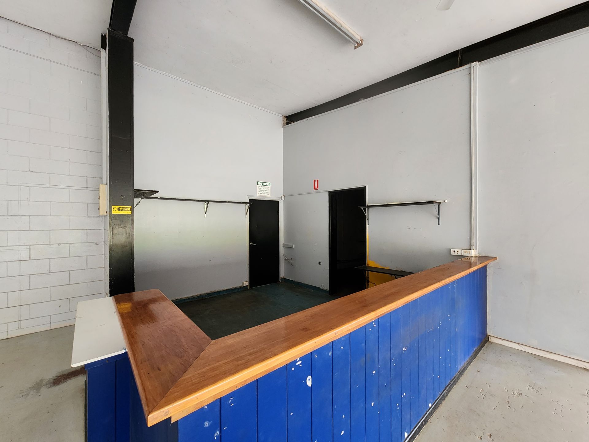 The improvements consist of a modern split style showroom and workshop. Block and cement construction with wide span steel ceiling offering a large, airy and bright showroom and the rear workshop with high clearance doors and room for lifts and vertical storage.