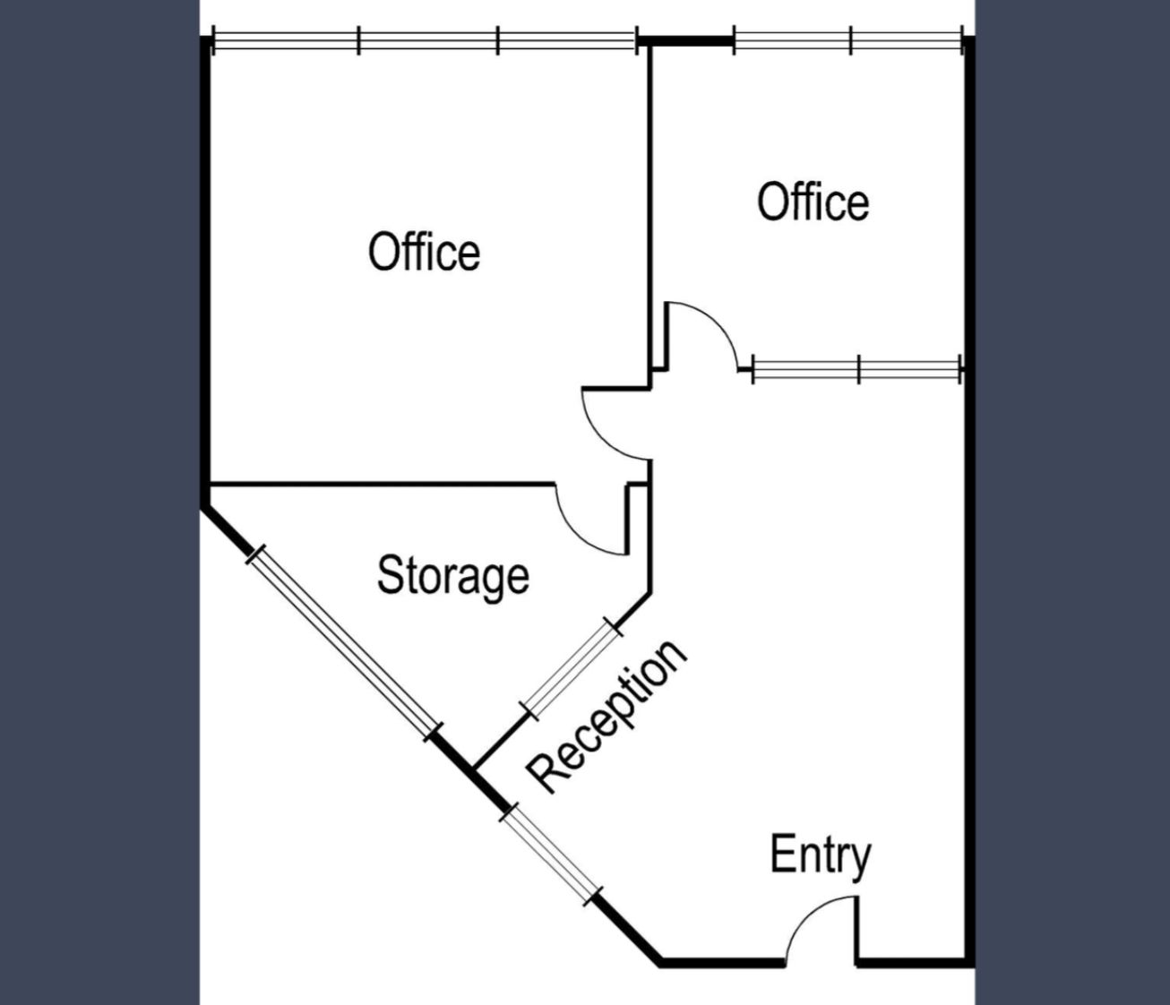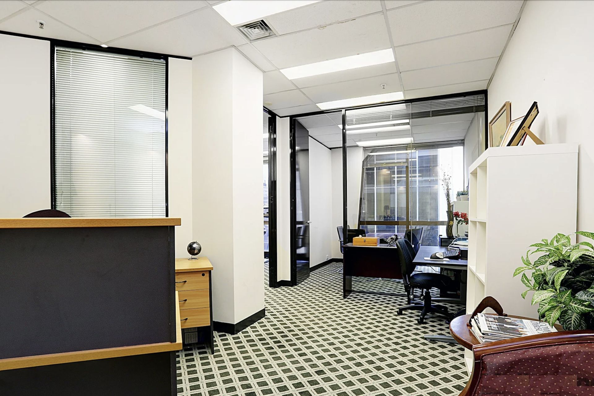 * Reception area, server room, office, and meeting room