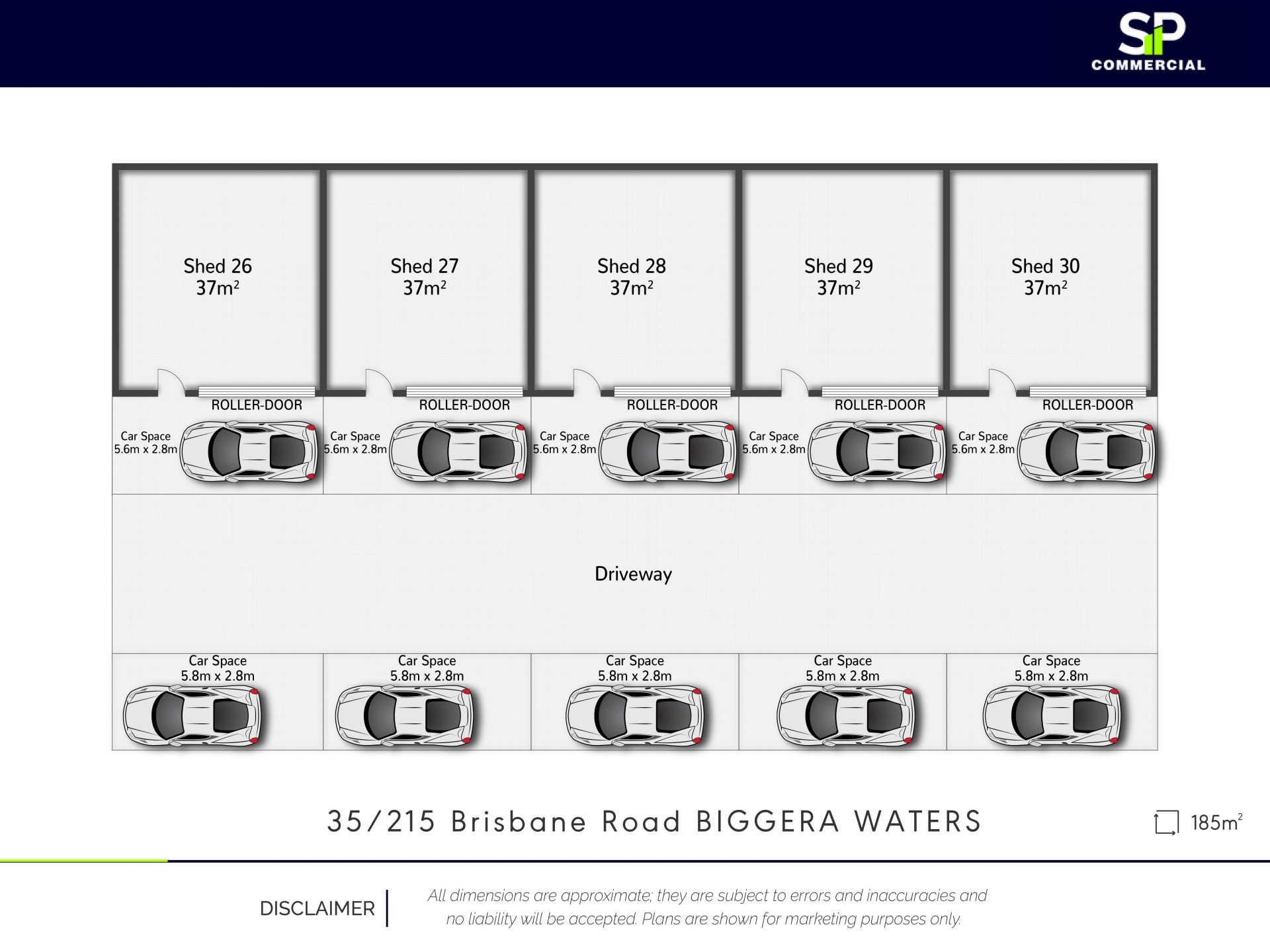- 5 x 37m2 Individual factory/sheds on the one title