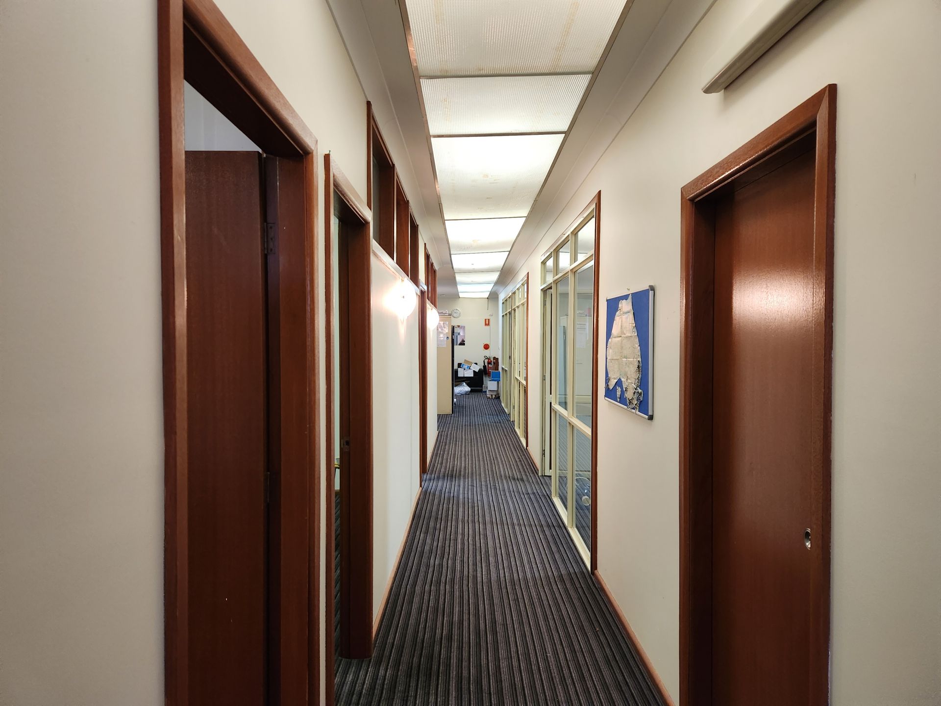 Landlord keen to lease and will consider all reasonable proposals. Rent free set up period available. Situated above shops , this office area has 4 enclosed offices, each approx 4.5m x 4m; 1 larger office approx 9m x 4m, a kitchenette/lunch room, a storeroom and male and female facilities. The total area is carpeted and there are 4 split system air-conditioners. Current tenant will leave all furniture if required. An alarm system is also installed. Parking is available in the Council car park adjacent to the building. Available for inspection by prior appointment.
