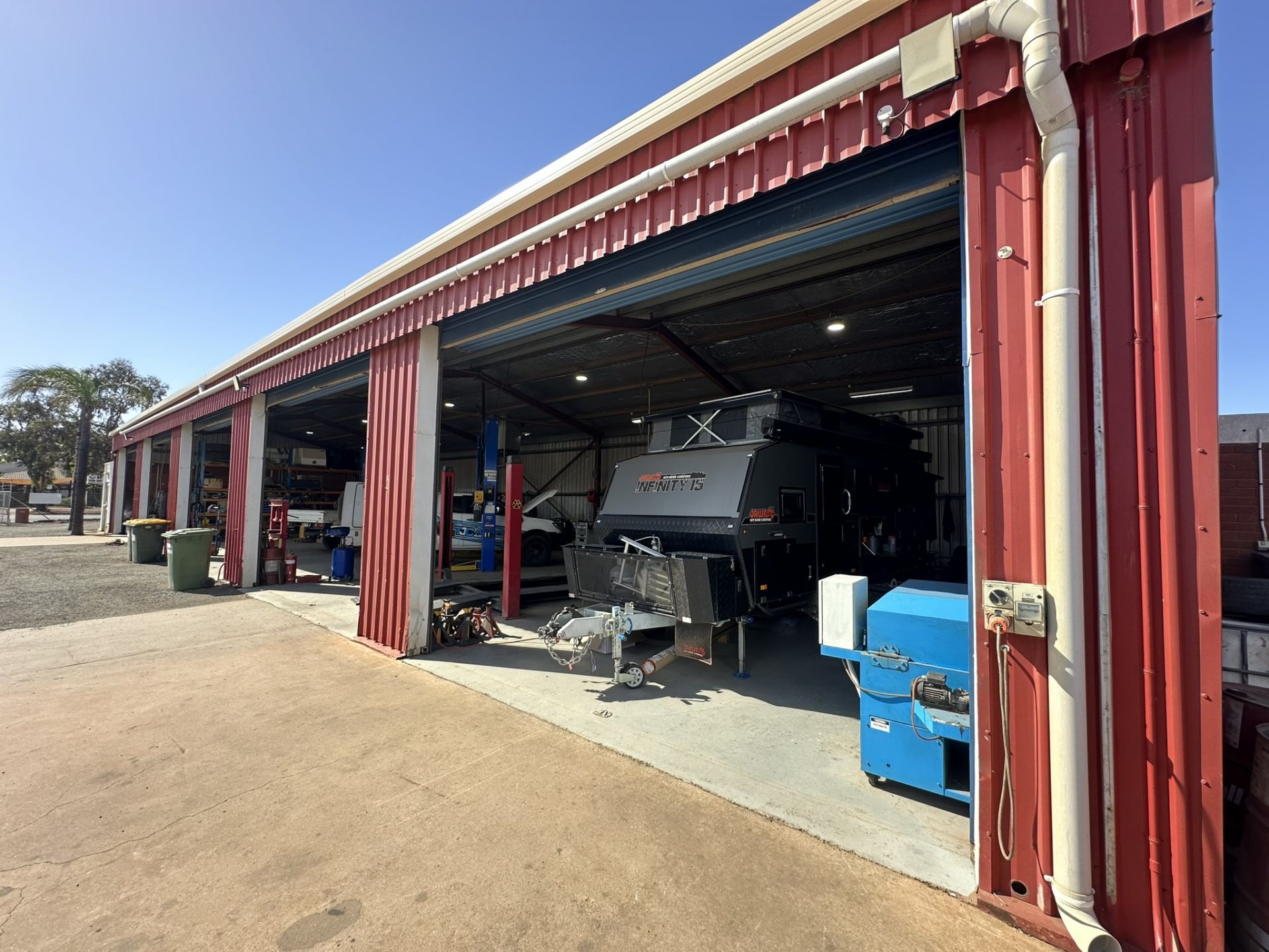 - 5 workshop bays all with their own roller door access