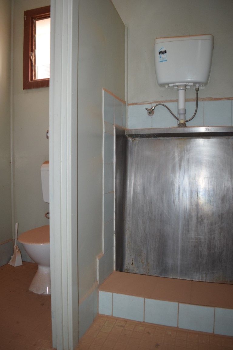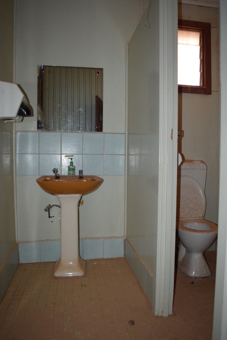 Shop front (tiled with split system air conditioner), rear small kitchen with double sink and wall unit air conditioner plus access to the separate toilet with small vanity basin plus rear door which leads to an enclosed shed area (for storage) and then access to another room (this room is tiled, the ceiling has thick black mould).