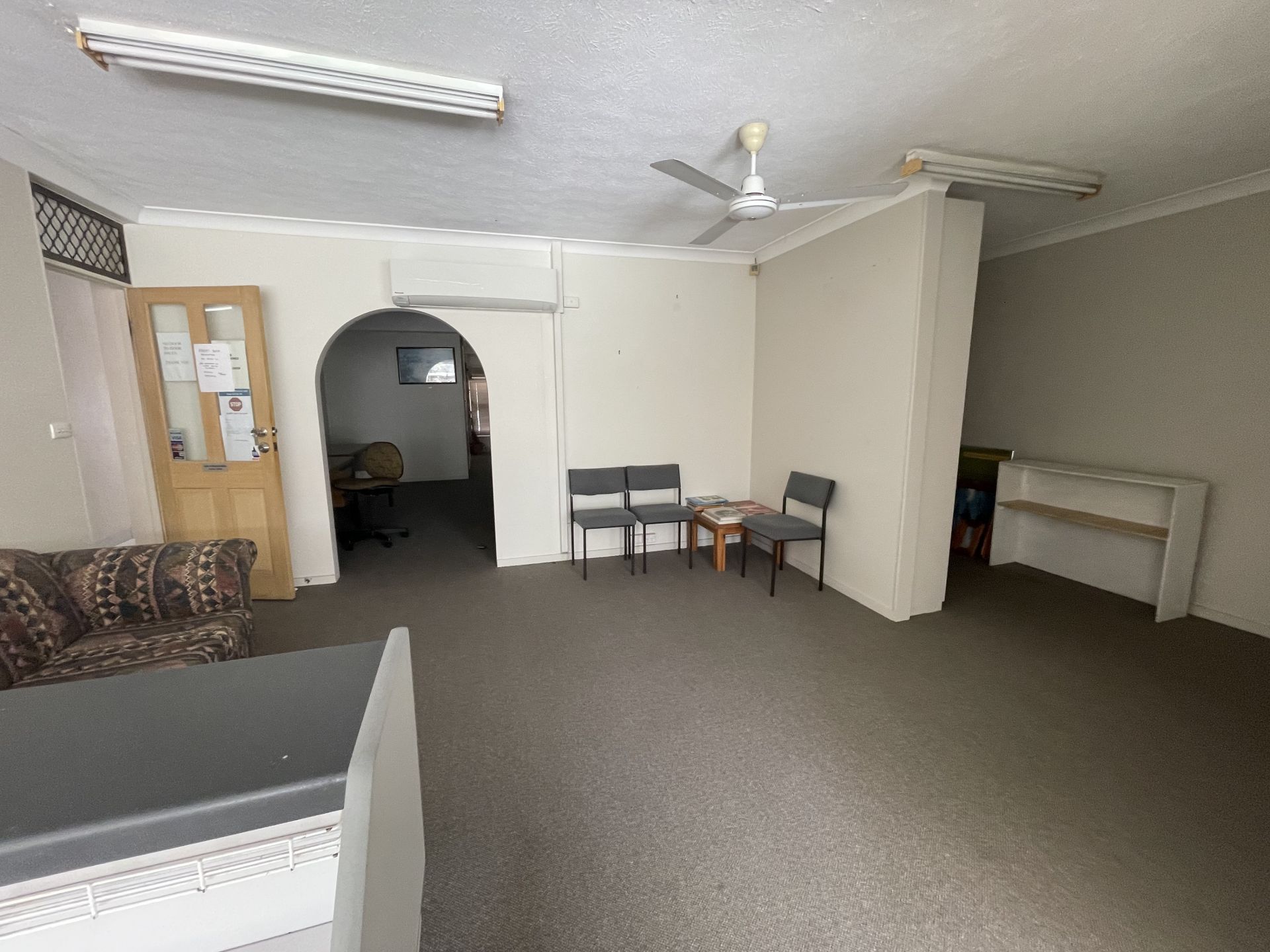 - office layout presents Reception, 2 Offices, Open work area and internal Kitchen facilities