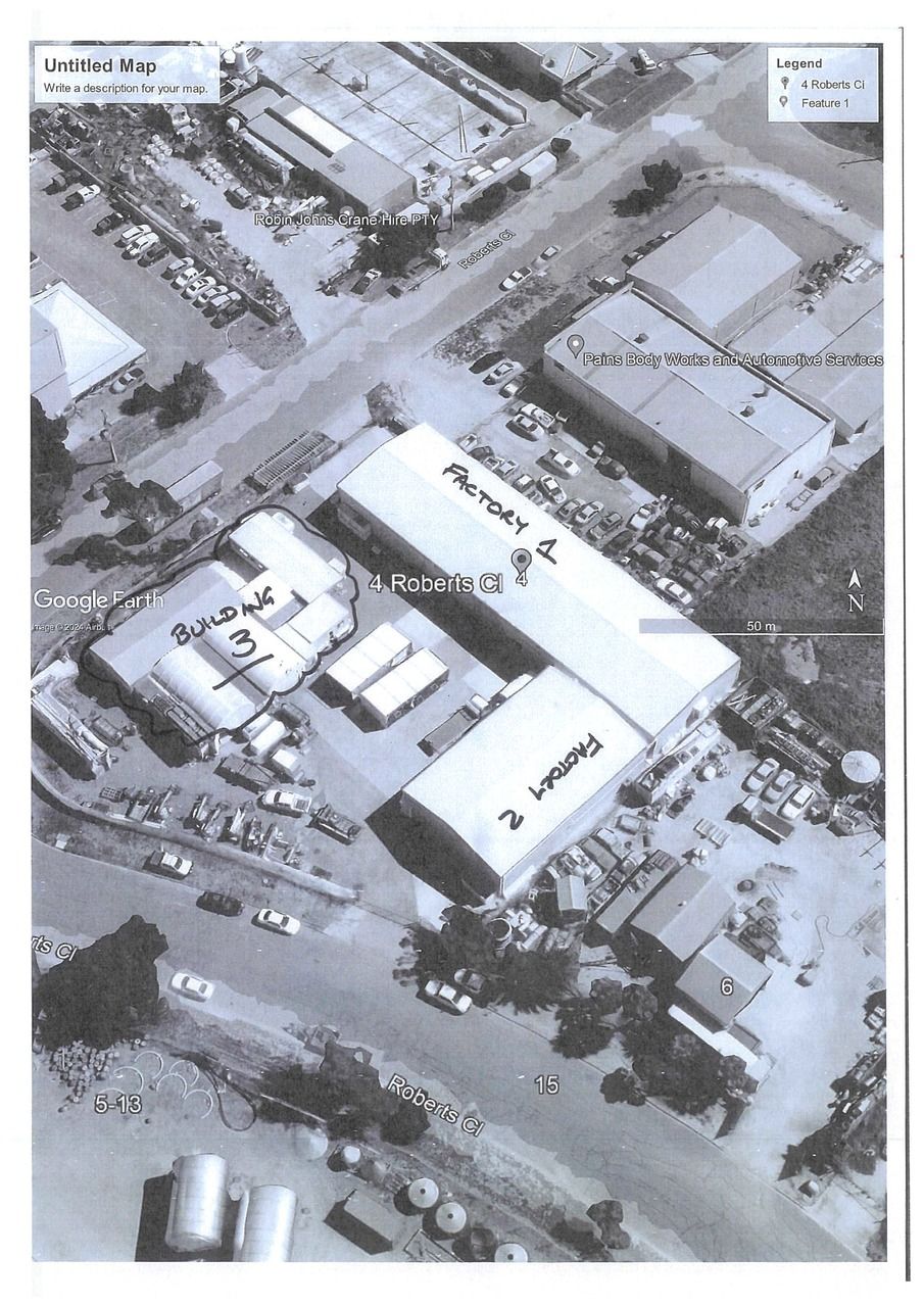 * Factory 1 approx. 837m2 with a roller door approx. 4.5m high