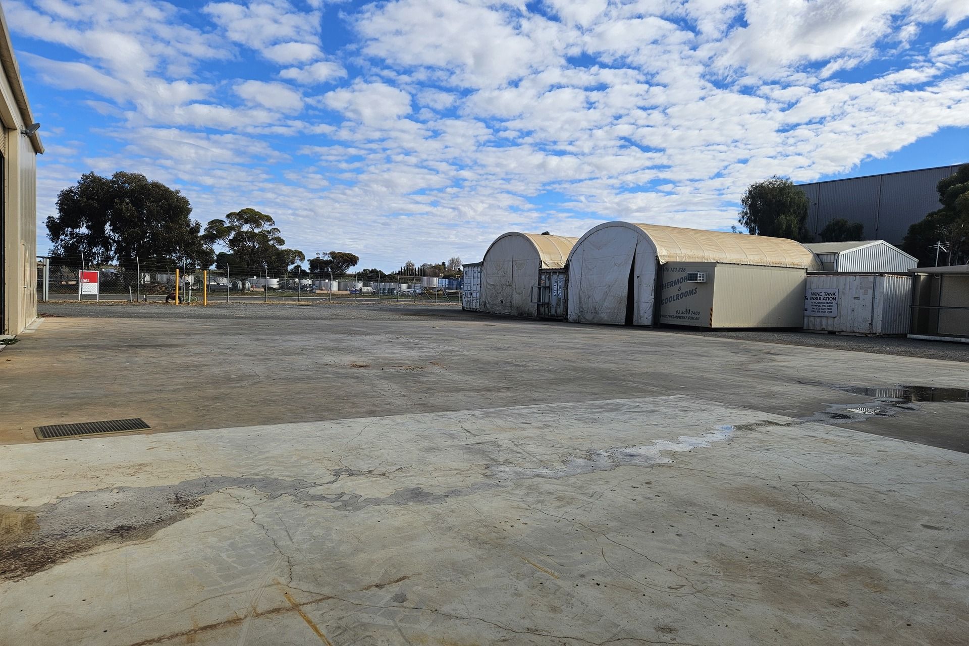 approx.18.5m2; 2 Tarped areas adjoining the shipping containers approx.