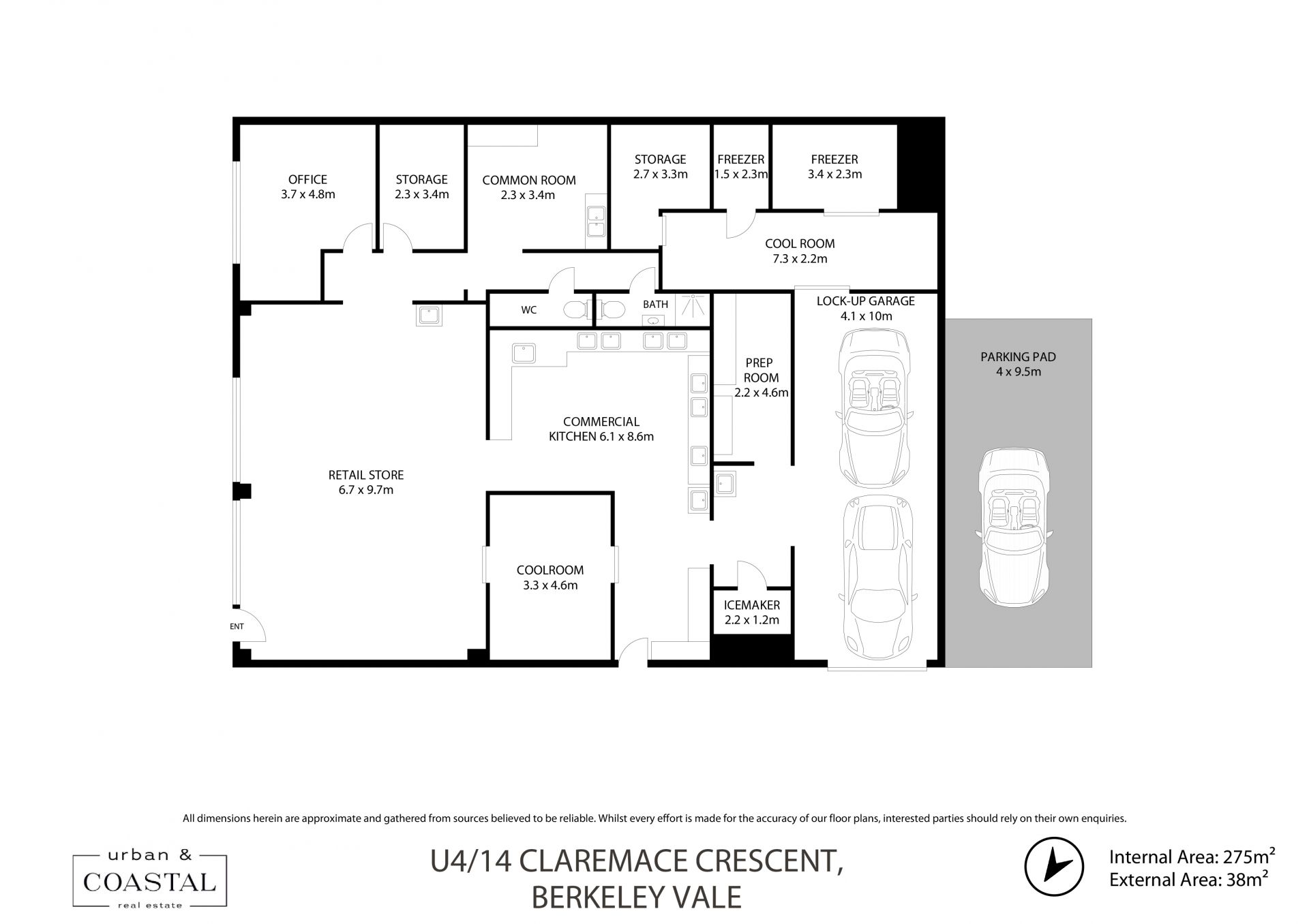 • Three cool rooms, walk in freezer, office, staff room and storage