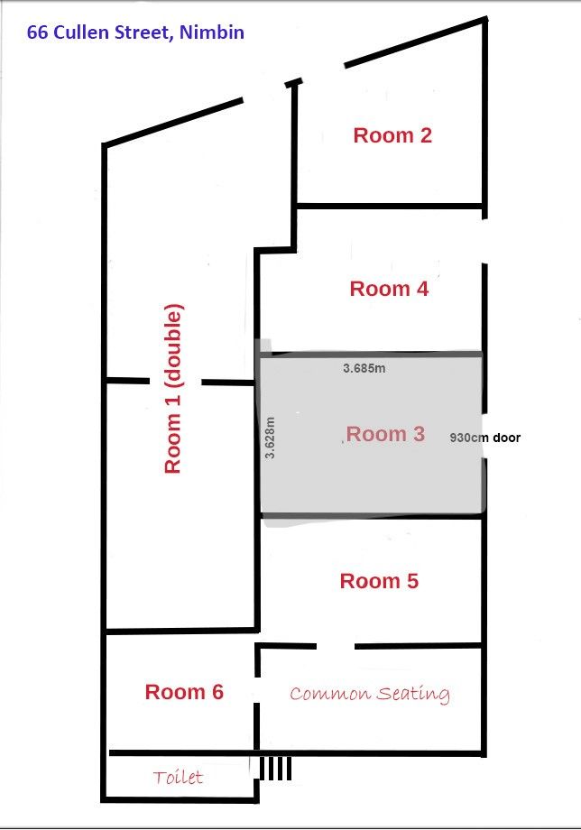 Room available in one of Nimbins iconic commercial buildings, located in the center of town. This space has direct access to footpath, shared bathroom facilities and is 13 sqm in size.