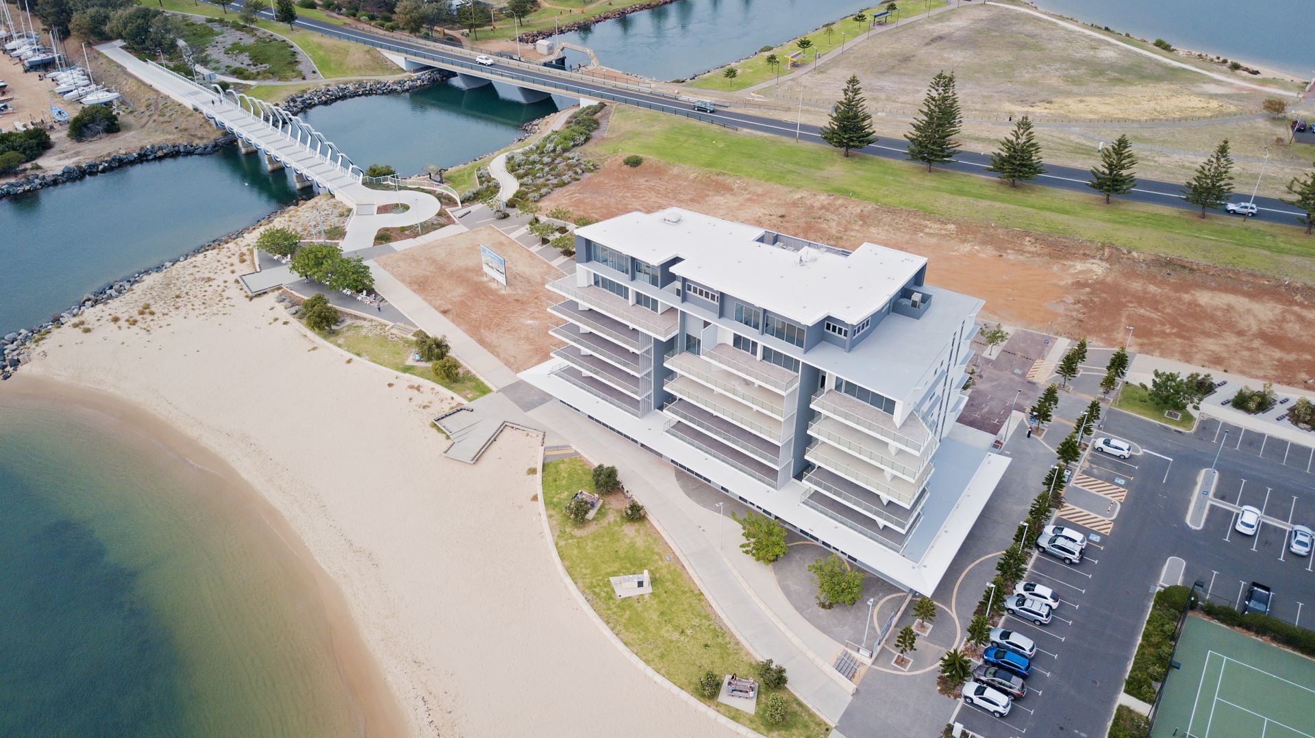 Purchase now to lock in your property, this commercial unit is approximately 105m2 and will be set up for office space, perfect for Bars, Coffee Shops and alike. With 10 apartments above and 2 Penthouses, another 4 lots to be built around and the new bridge linking The Dolphin Discovery Centre, the Beach Café it just makes good business sense.
