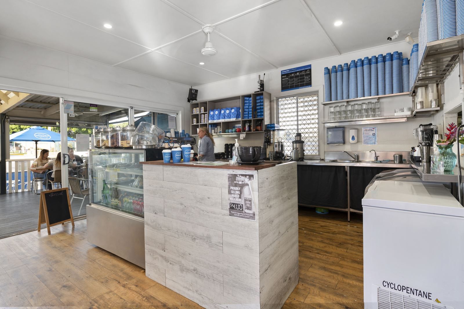 57 Ocean Parade Coffs Harbour is situated in a rare beachfront location on a level land allotment of approximately. 1,018m2, there is a cottage on the land which is home to a vibrant cafe which has been recently painted with a white theme.