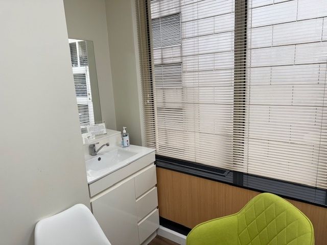 The office features a unique layout, including four consulting rooms (three equipped with water supply), an administrative office with water supply, a reception area, and a waiting room. This setup eliminates the need for costly renovations to install water facilities, which can be challenging or impossible in some buildings. Additional amenities include 24/7 access and a secure basement car park included with the title.