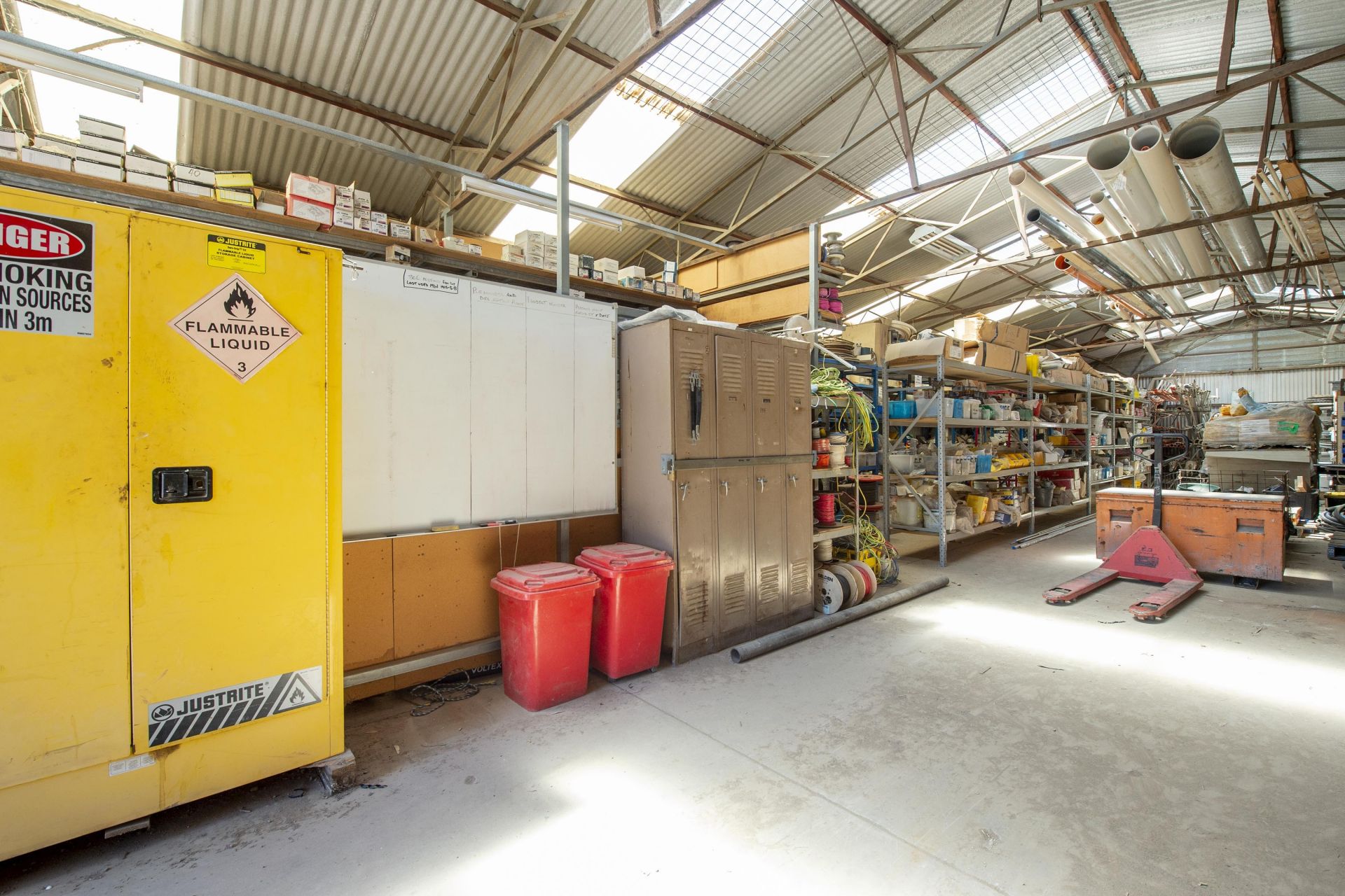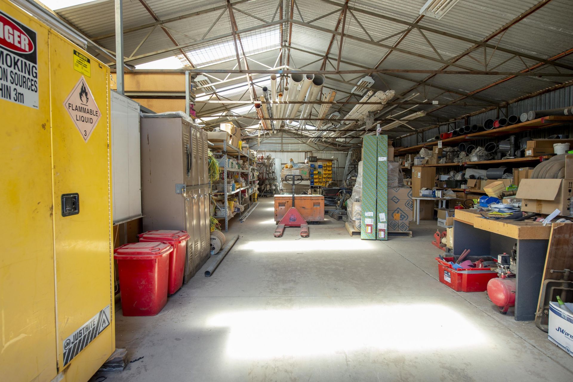 The property spans a substantial 5600 sqm parcel of land and features multiple shedding options (over 1,000 square meters of combined shedding), equipped with electricity, concrete flooring and 3 phase power. The site is fully fenced, ensuring security and privacy for the tenant. With four street frontages, it offers excellent visibility and accessibility.