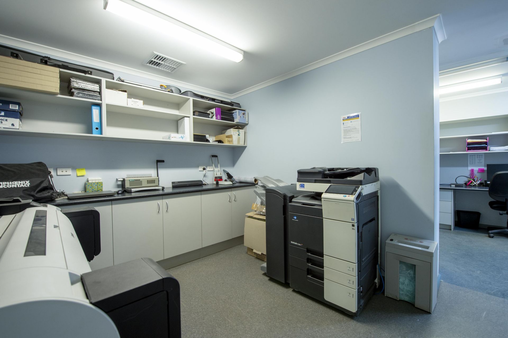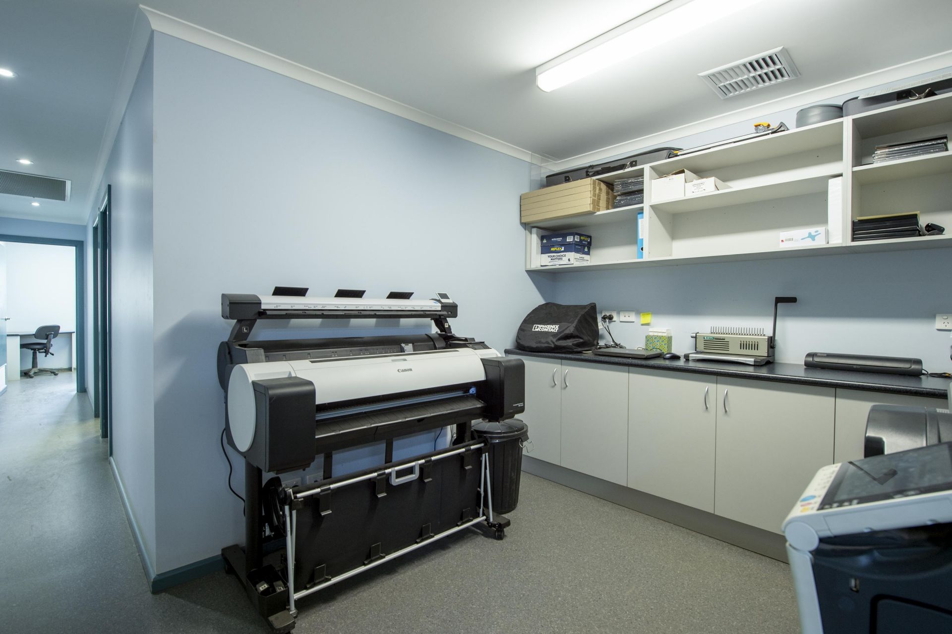 - Comprehensive Office Facilities: Includes 5 offices, a boardroom, printing rooms and reception area